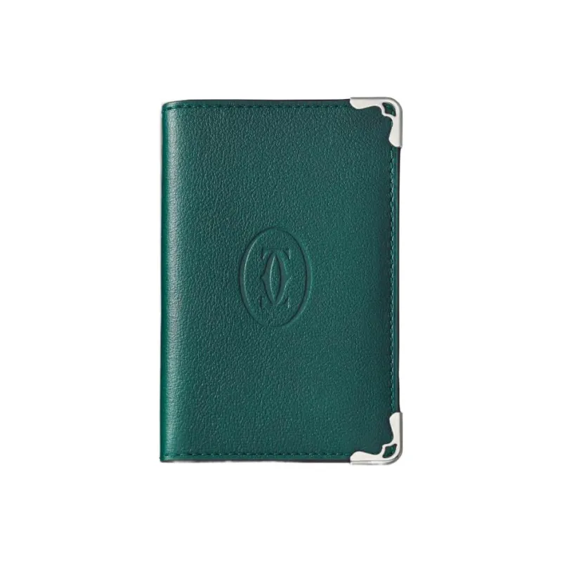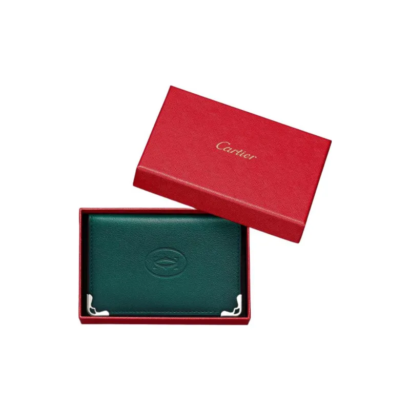Cartier Must De Cartier Телячья кожа Держатель для карт Мужской Павлиний зеленый