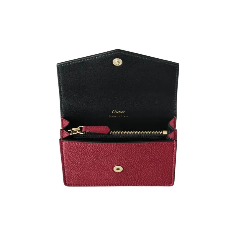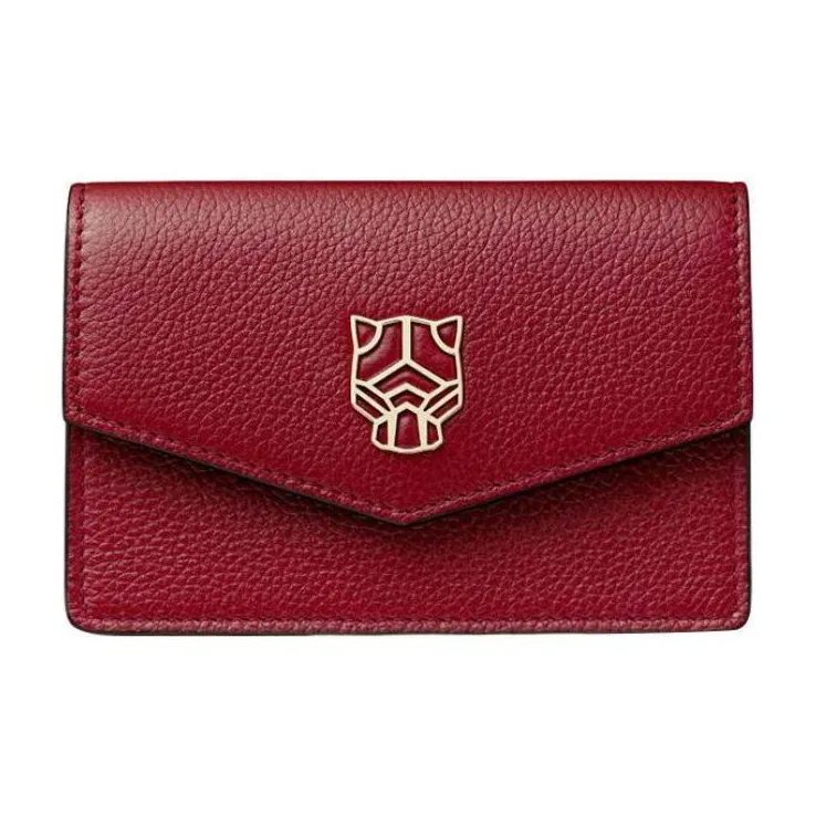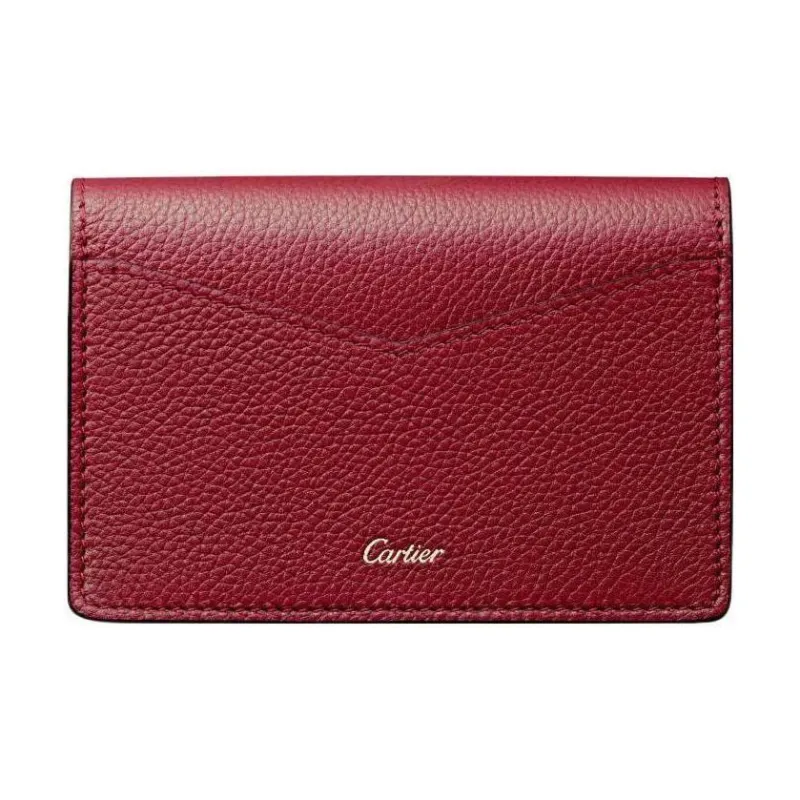 Cartier Кожаные Аксессуары Panthère De Cartier, Футляр Для Кредитных Карт Телячья Кожа Бордового Цвета, Позолоченная Отделка
