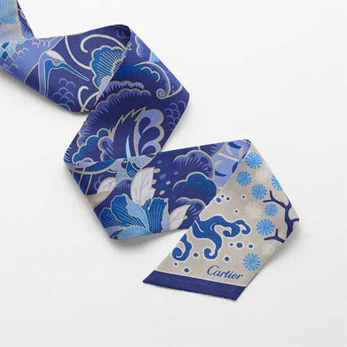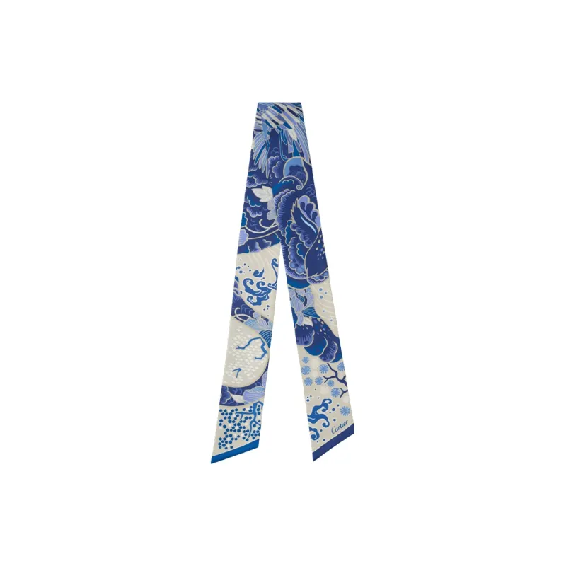 Cartier Бандо Panthère Estampe Шелк Саржевого Плетения Синего И Бежевого Цветов