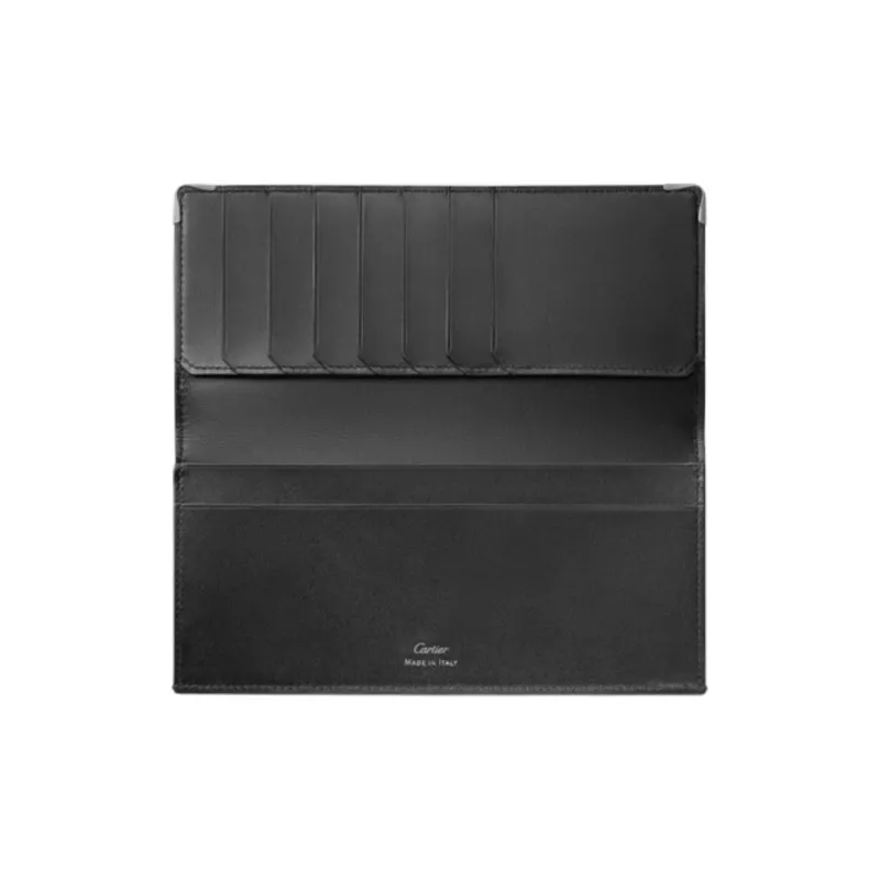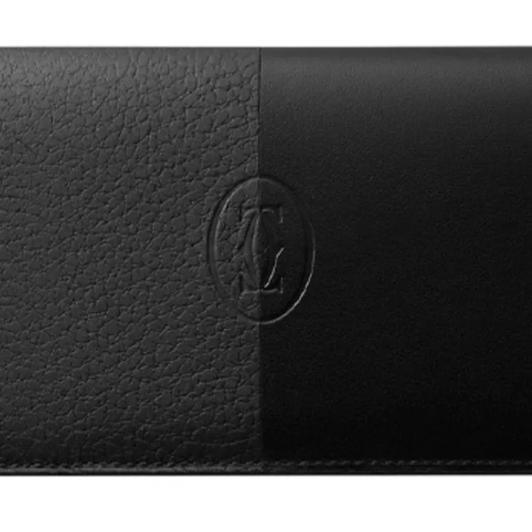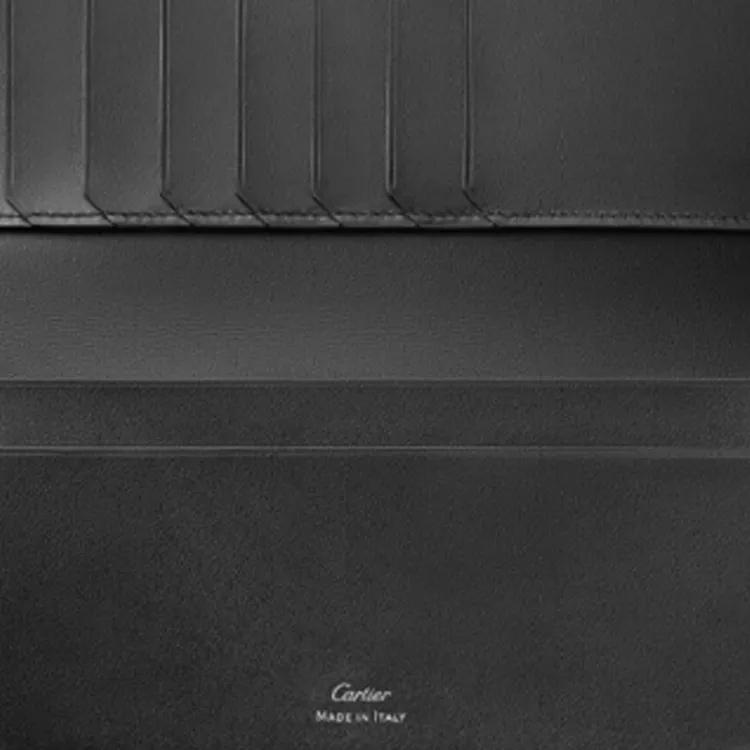 Cartier Бумажник Стандартного Размера Must De Cartier На Молнии Гладкая И Зернистая Телячья Кожа Черного Цвета, Черное PVD-покрытие