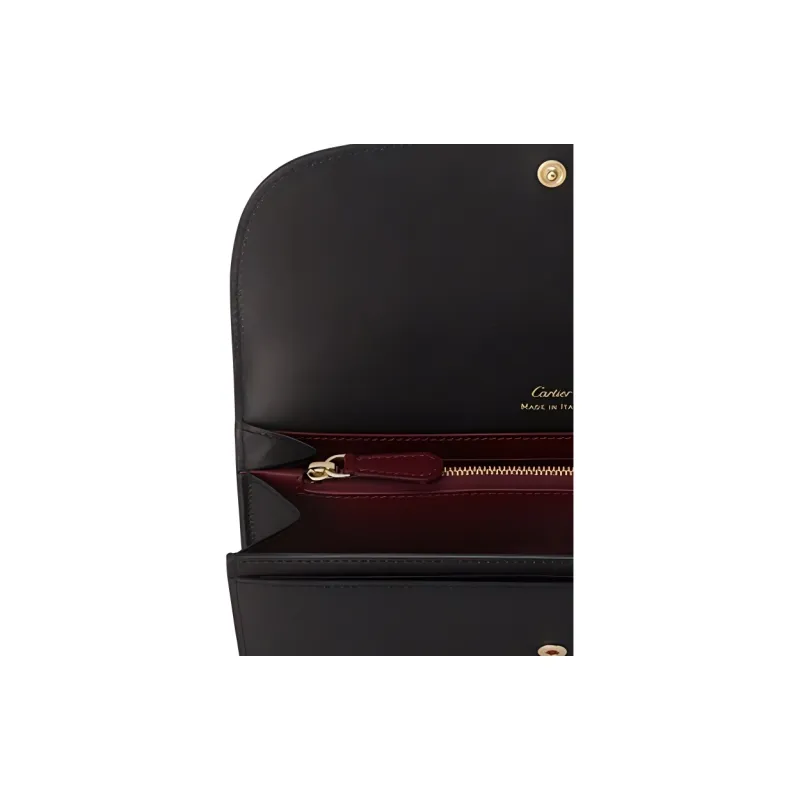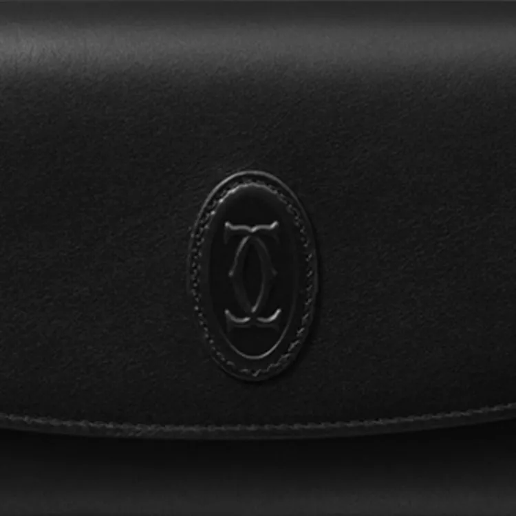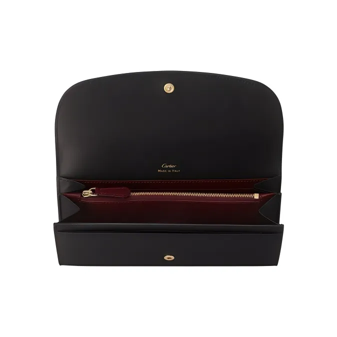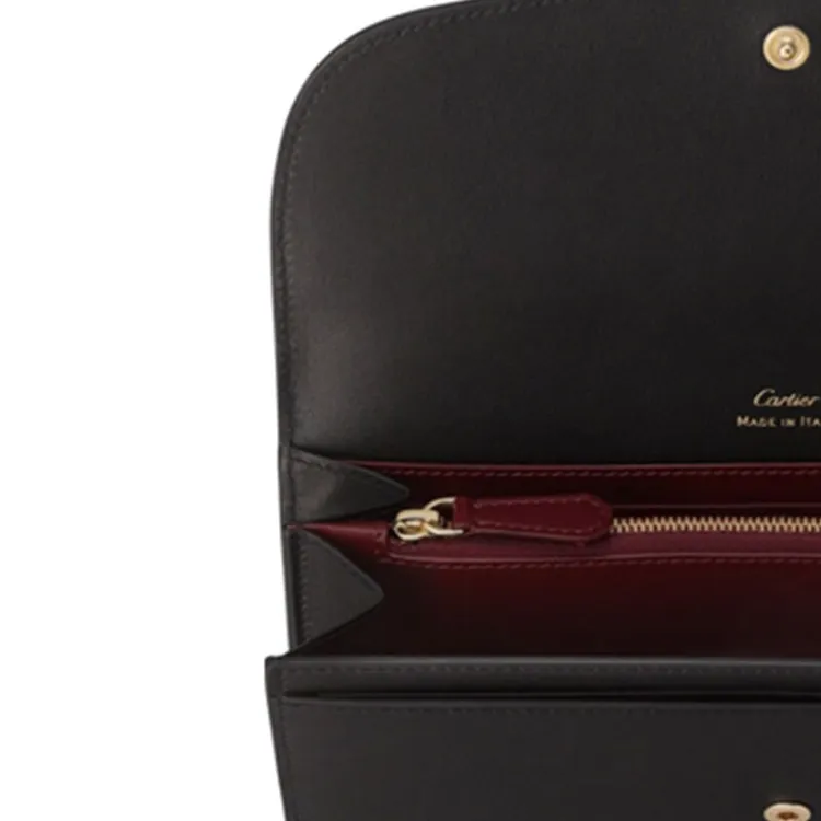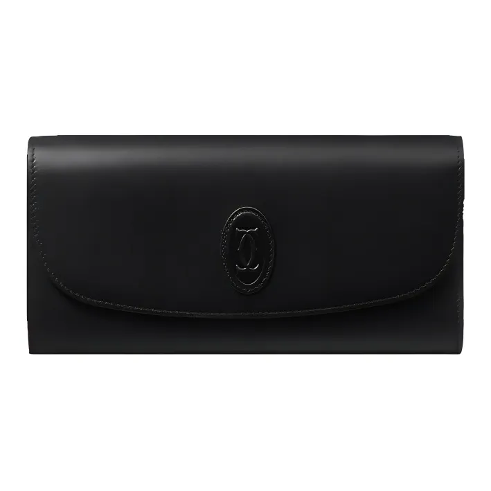 Cartier Бумажник Стандартного Размера С Клапаном, Must De Cartier Телячья Кожа Черного Цвета, Позолоченная Отделка