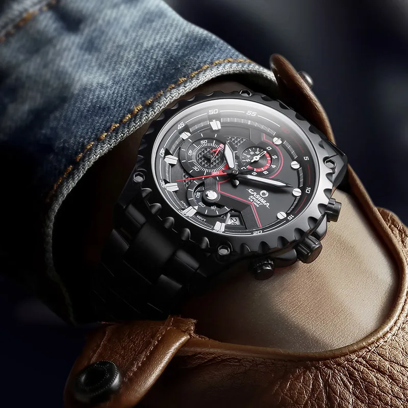 CASIMA Кварцевый механизм Мужские часы 36,5мм*44мм*12,8мм Черный