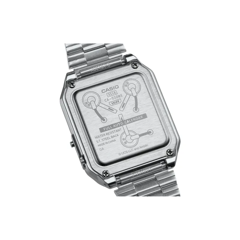 Casio Back to the Future Винтаж Кварцевый Механизм Нержавеющая Сталь Ремешок Часы Мужские Часы Серый Циферблат