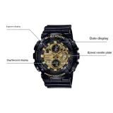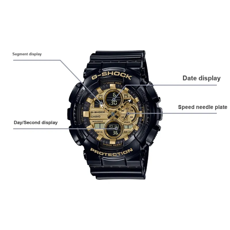 Г SHOCK Черный Золото Кварц Механизм Смола Ремешок Часы Мужские Часы Золотистый Циферблат