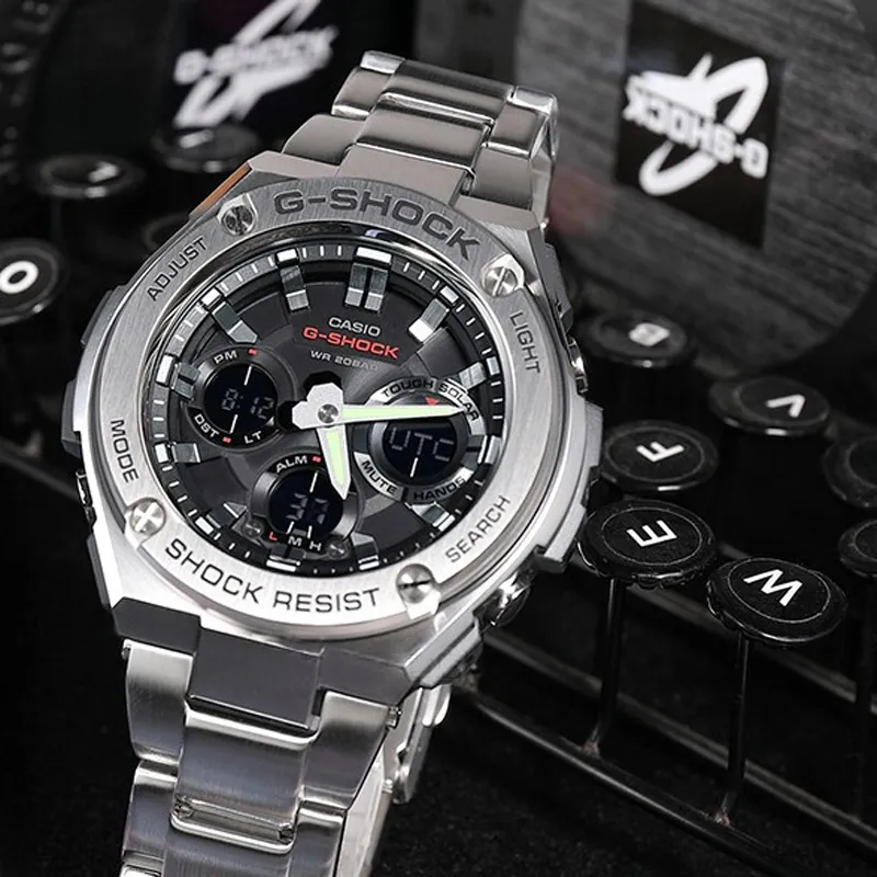 CASIO Солнечный кварцевый механизм мужские часы коллекция Steel S Dual Display 59,1 мм*52,4 мм*16,1 мм черный