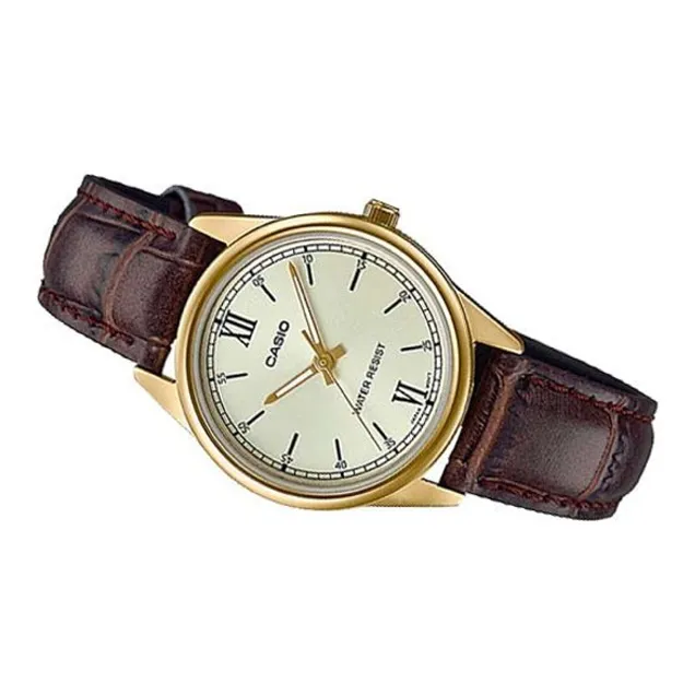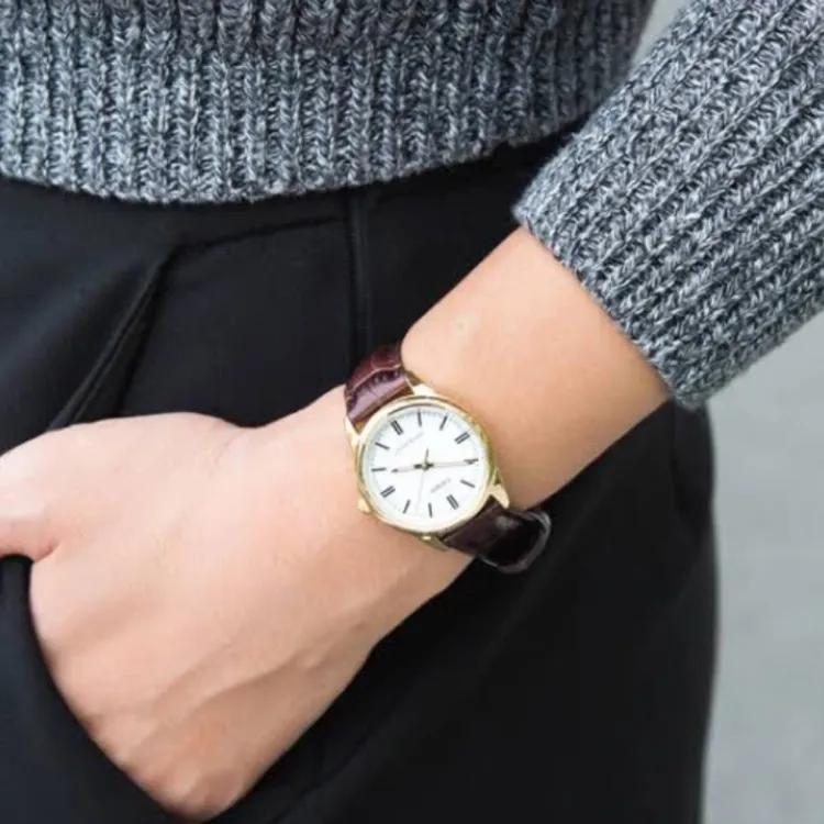 CASIO Standard Series DRESS Collection Кварцевый механизм Кожаный ремешок Часы Женские Золотистый циферблат
