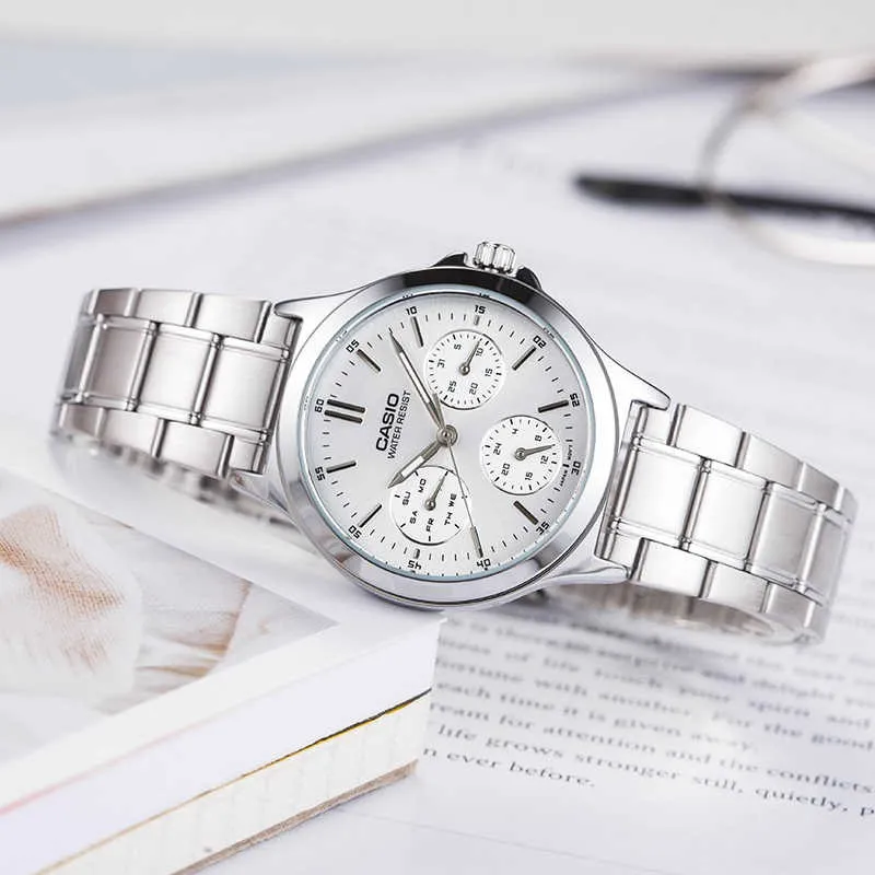 CASIO Standard Series DRESS Collection Кварцевый механизм Нержавеющая сталь Ремешок Часы Женские Белый циферблат
