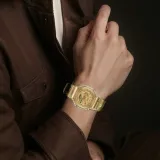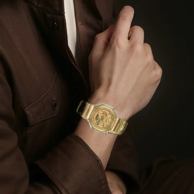 CASIO Steel Series Кварцевый механизм Резиновый ремешок Часы Унисекс Золотой циферблат