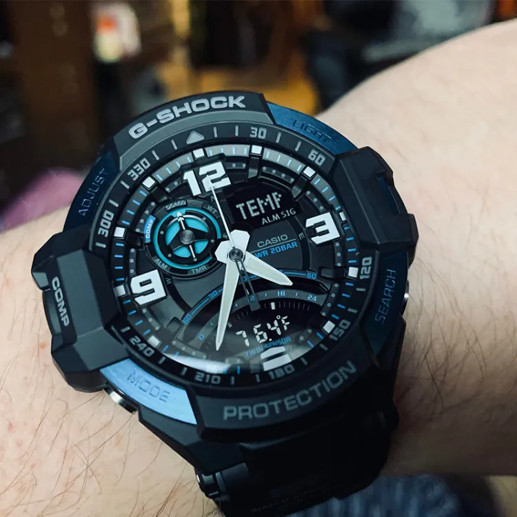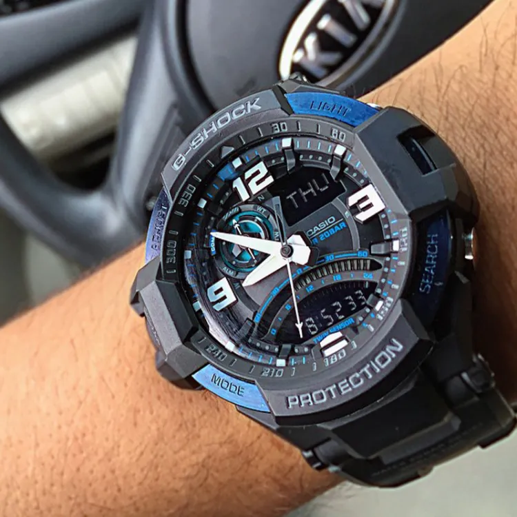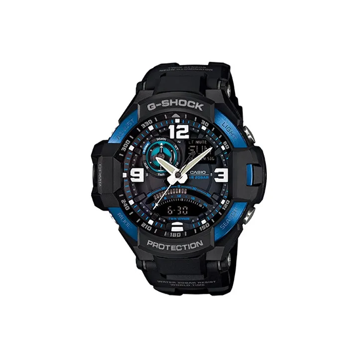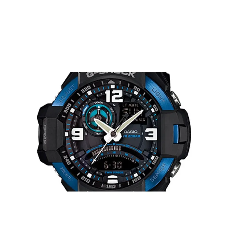 CASIO Aviation Collection Кварцевый механизм Смольный ремешок Часы Мужские Черный циферблат GA 1000 2B