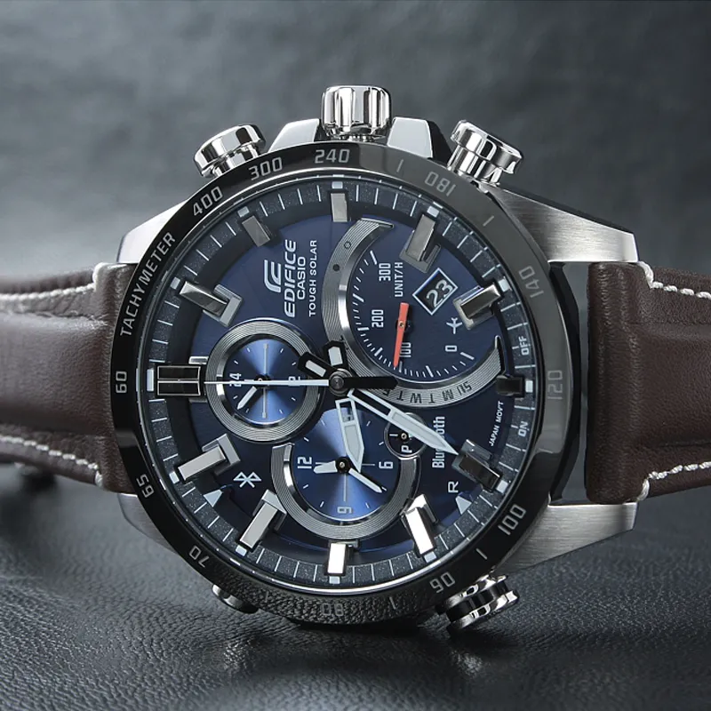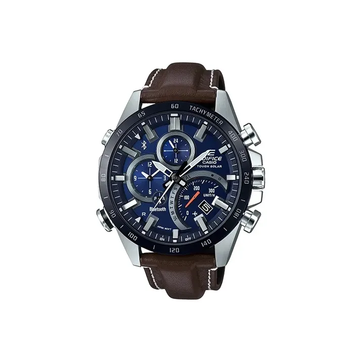 CASIO EDIFICE Солнечный кварцевый механизм натуральная кожа ремешок часы для мужчин синий циферблат EQB 501XBL 2A