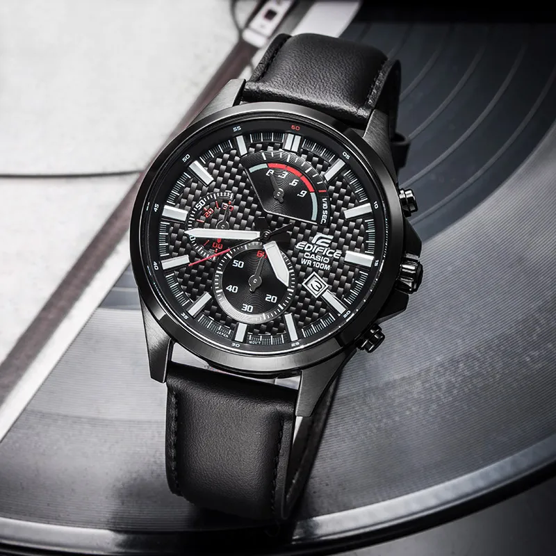 CASIO EDIFICE Кварцевый механизм натуральная кожа ремешок часы для мужчин белый циферблат