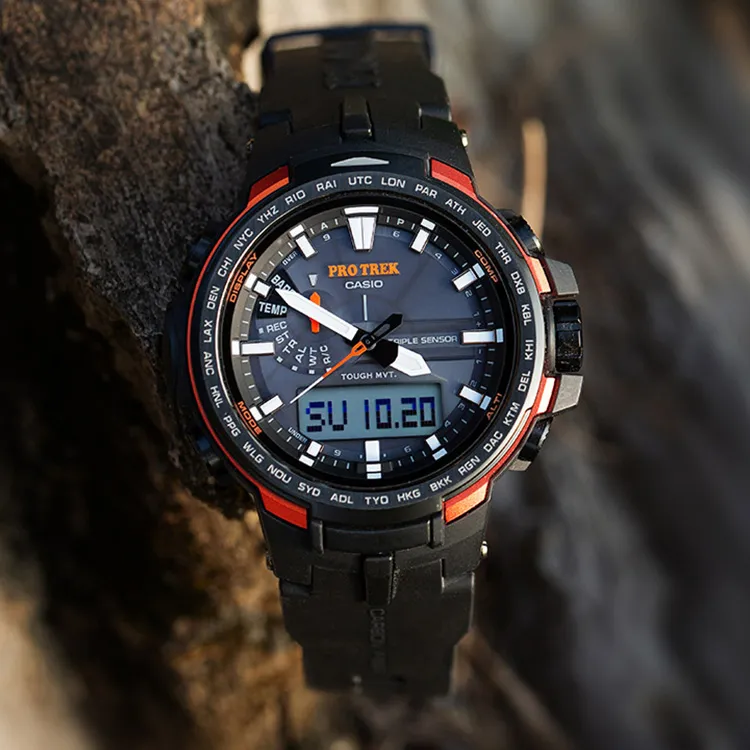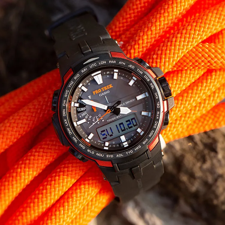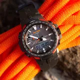 Часы Casio PRO TREK Collection с двойным дисплеем кварцевый механизм корпус из смолы ремешок из углеродного волокна