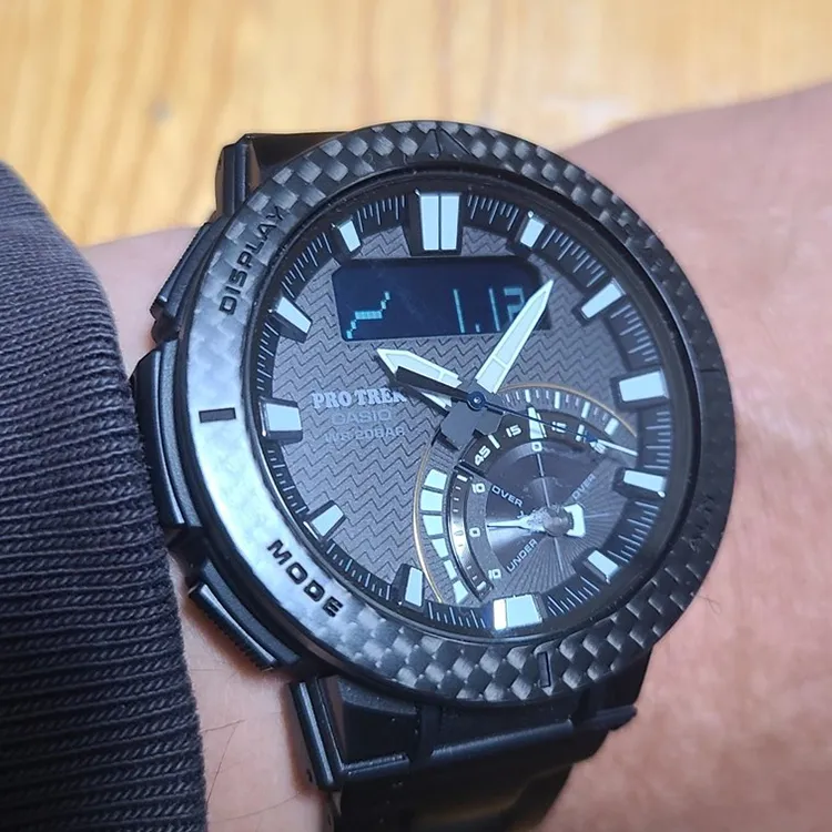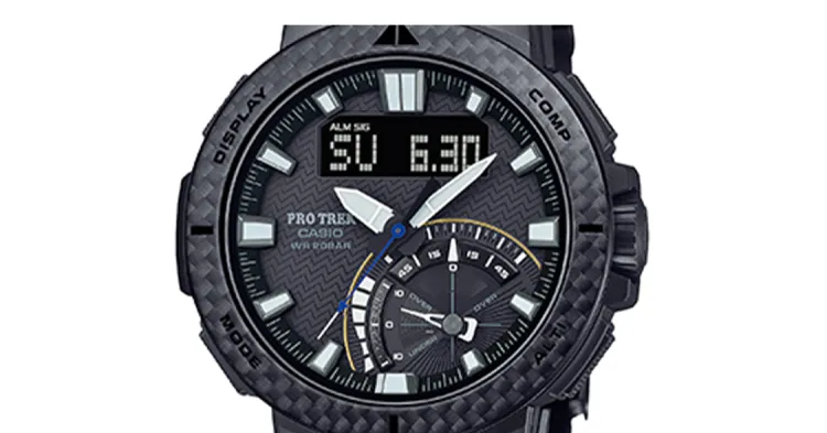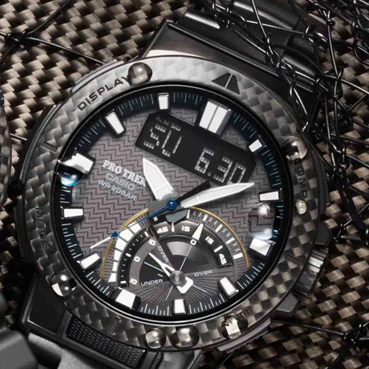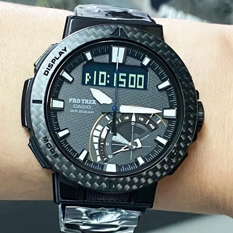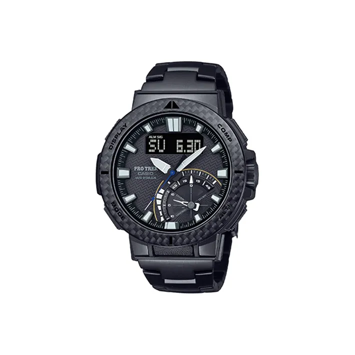 Часы Casio PRO TREK Collection с двумя дисплеями кварцевый механизм титановый ремешок мужские часы