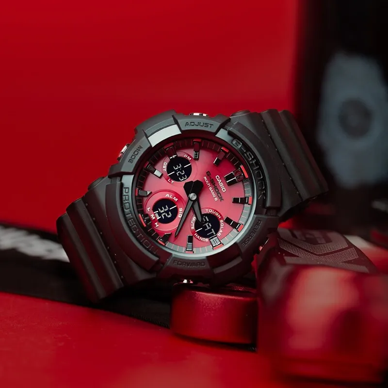 CASIO G SHOCK Collection Кварцевый механизм Смольный ремешок Часы 55,1*52,5 мм Мужские часы Красный циферблат часов GAS 100AR 1A
