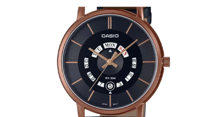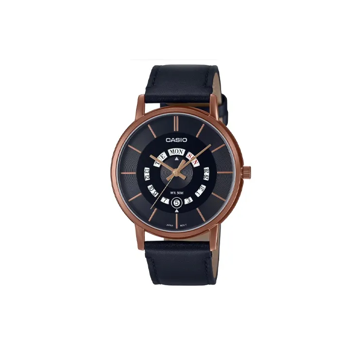 CASIO Кварцевый механизм ремень из натуральной кожи черный циферблат мужские часы