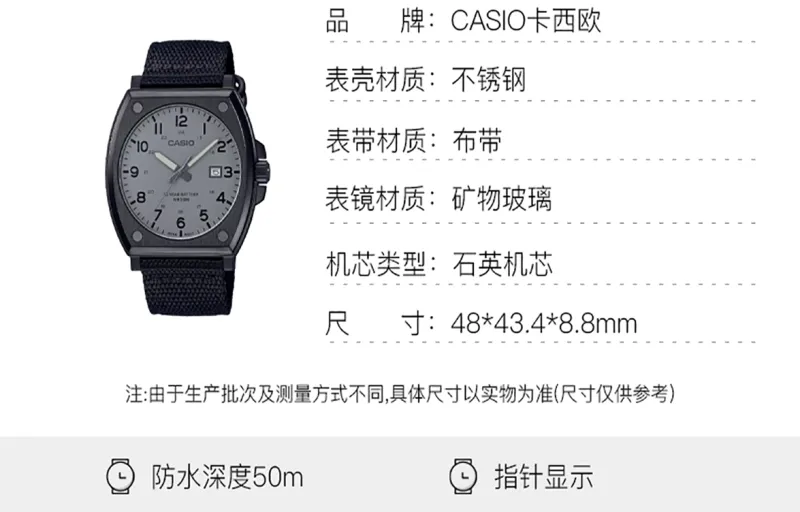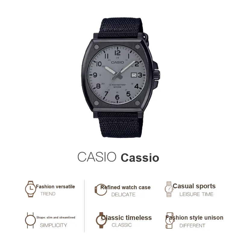 CASIO Standard Series Кварцевый механизм Естественная кожа ткань Ремешок Часы Мужские Черный циферблат