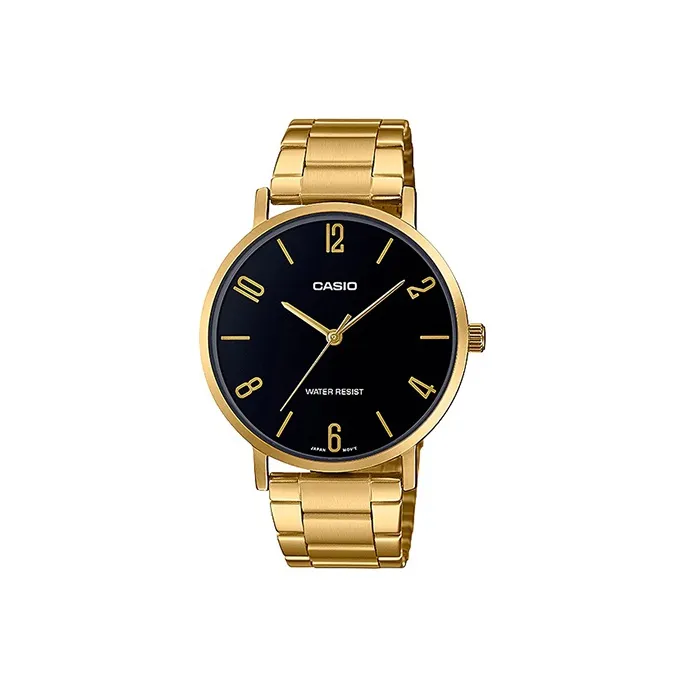 CASIO Standard Series Кварцевый механизм Нержавеющая сталь Ремешок Часы Мужские Черный циферблат MTP VT01G 1B2