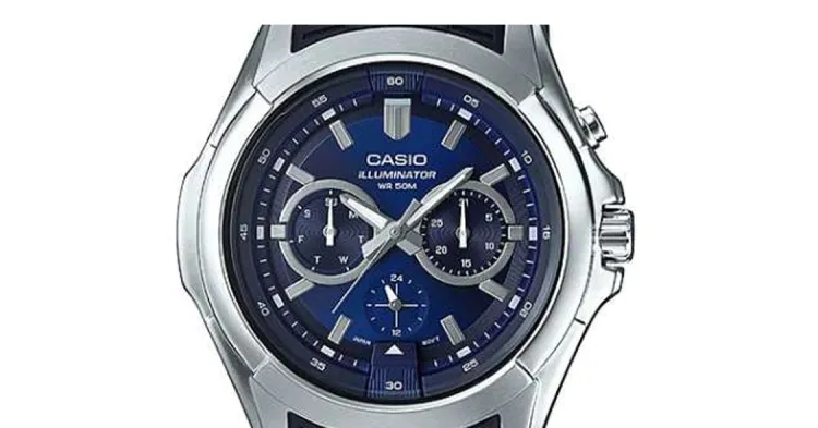 CASIO Кварцевый механизм Смола Ремешок Часы Мужские Циферблат Синий MTP E204 2AVDF