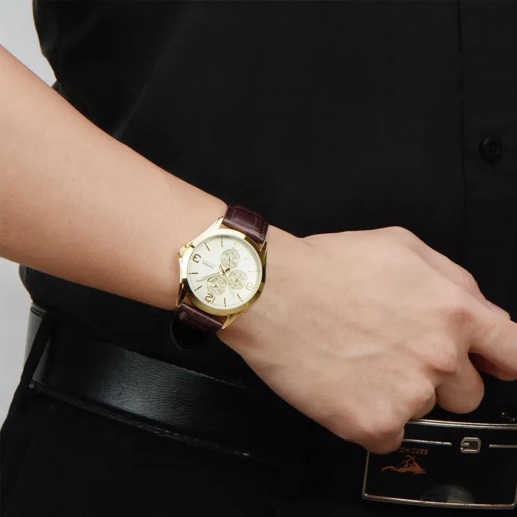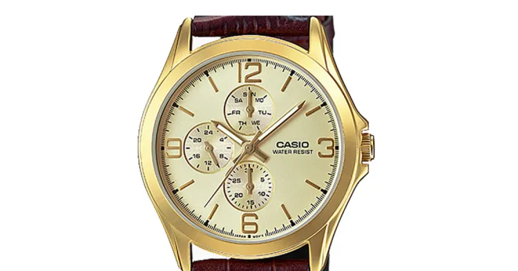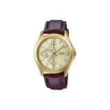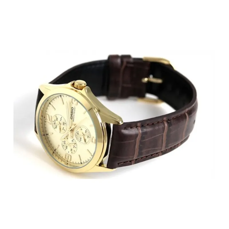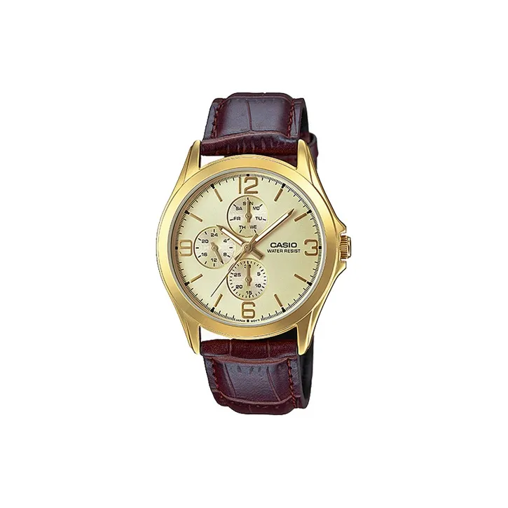 CASIO Standard Series Кварцевый механизм Кожаный ремешок Часы Мужские Золотистый циферблат MTP V301GL 9A