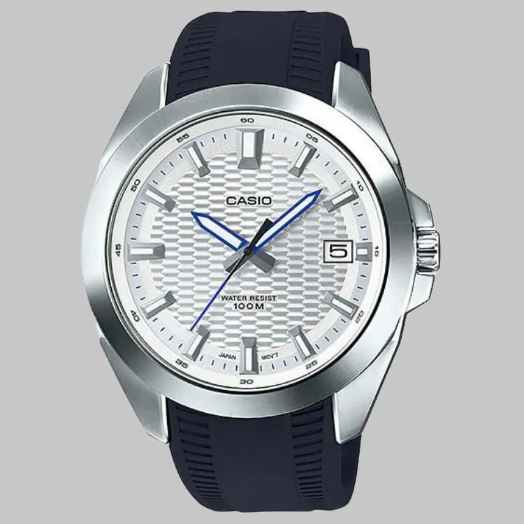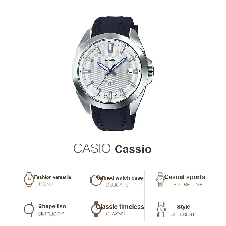 CASIO Standard Series Кварцевый механизм Смольный ремешок Часы 51,5мм*47,2мм*10,1мм Мужские часы Серебристый циферблат