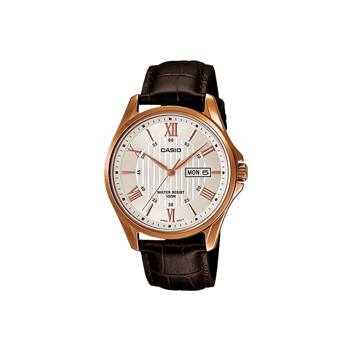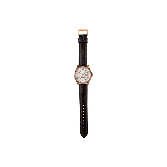 CASIO Кварцевый механизм Кожаный ремешок Часы Мужские Белый циферблат MTP 1384L 7AV