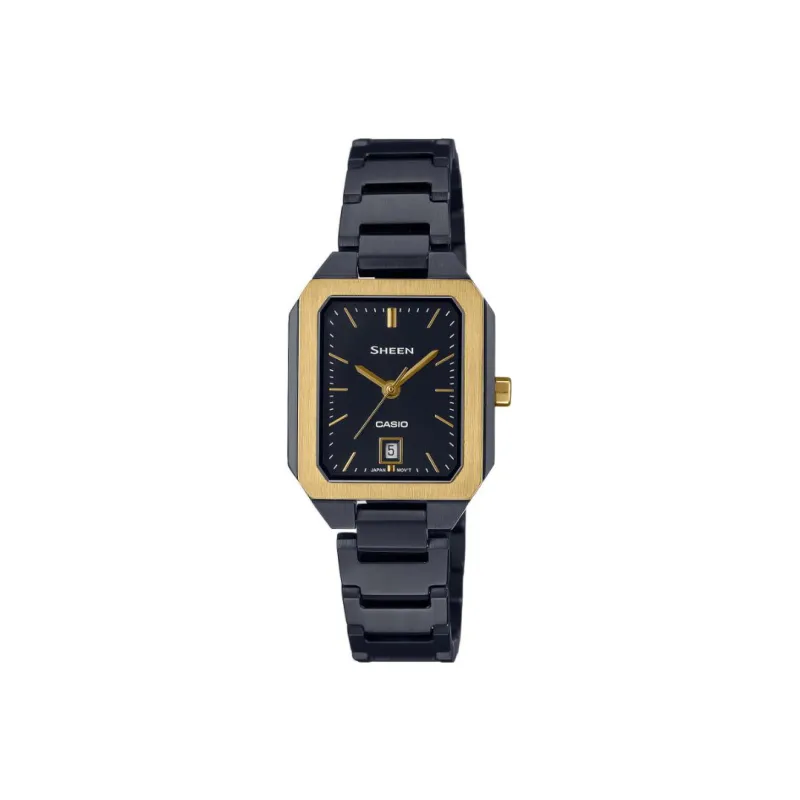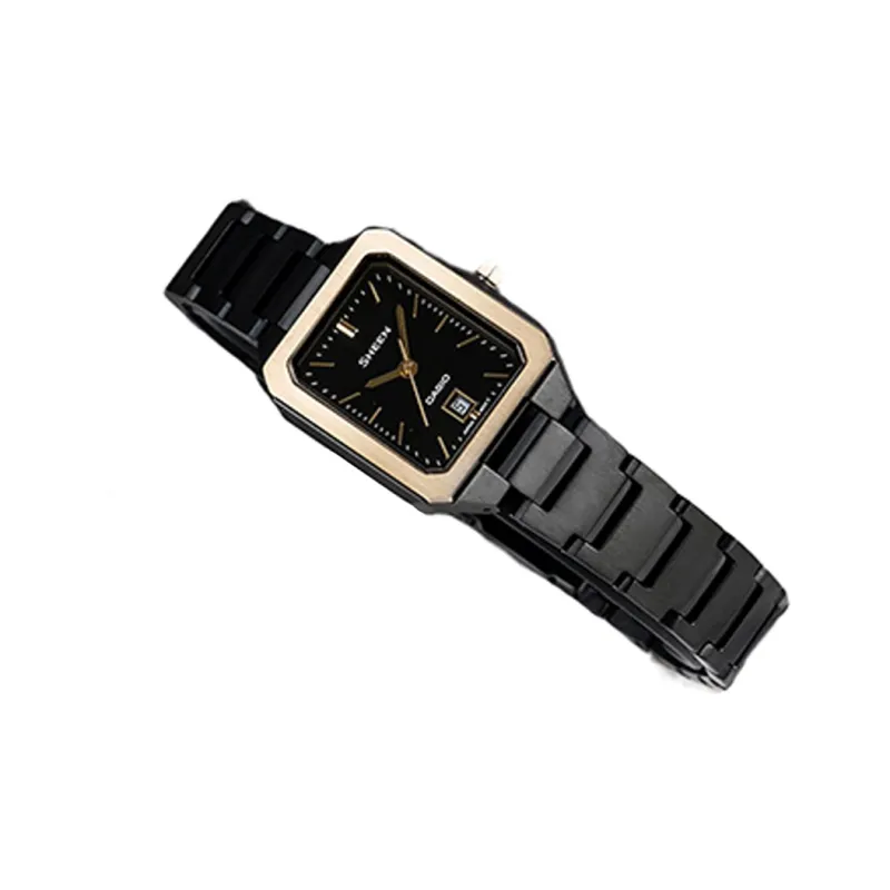 CASIO SHE4555 Galaxy Starry Коробка Кварцевый Механизм Нержавеющая Сталь Ремешок Часы Женские Черный Циферблат
