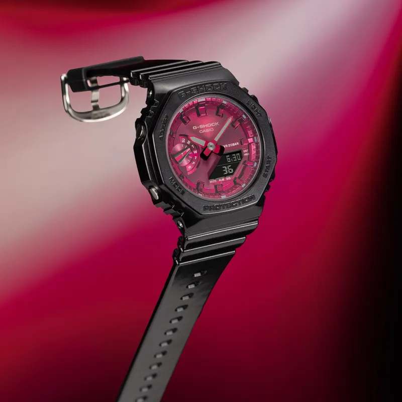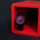 CASIO Кварцевый механизм Смольный ремешок Часы 46,2*42,9*11,2 мм Женские часы Красный циферблат