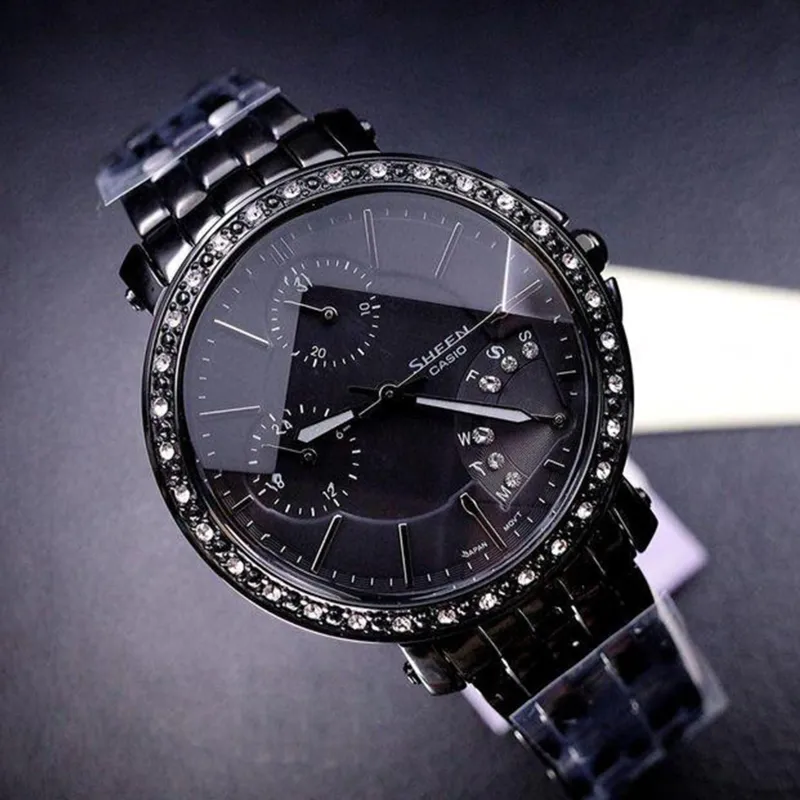 CASIO SHEEN Collection Кварцевый механизм нержавеющая сталь ремешок женские часы черный циферблат SHN 3011BB 1A