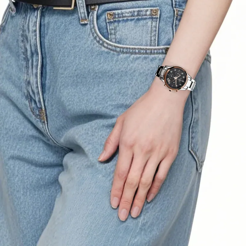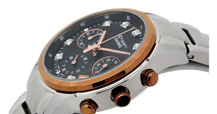 CASIO SHEEN Collection Кварцевый механизм ремешок из нержавеющей стали женские часы черный циферблат
