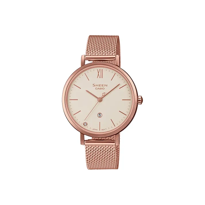 CASIO SHEEN Кварцевый механизм нержавеющая сталь ремешок женские часы жемчужная раковина цвет циферблат