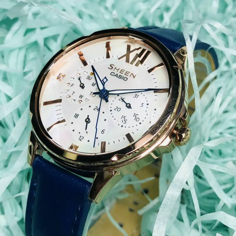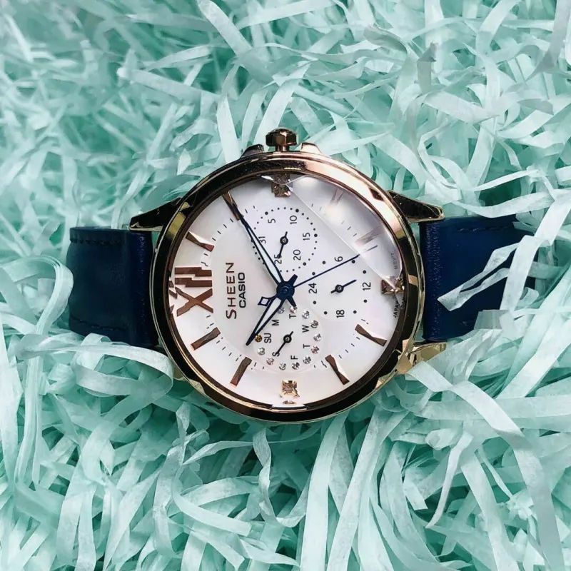 CASIO Sheen Collection Кварцевый механизм часы с натуральной кожей ремешок женские часы