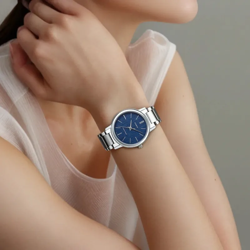 CASIO Standard Series Кварцевый механизм часы с ремешком из нержавеющей стали женские часы синий циферблат