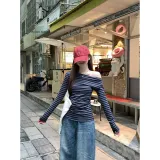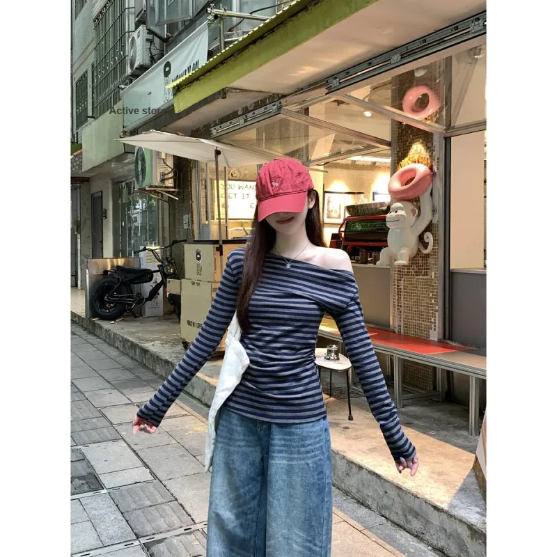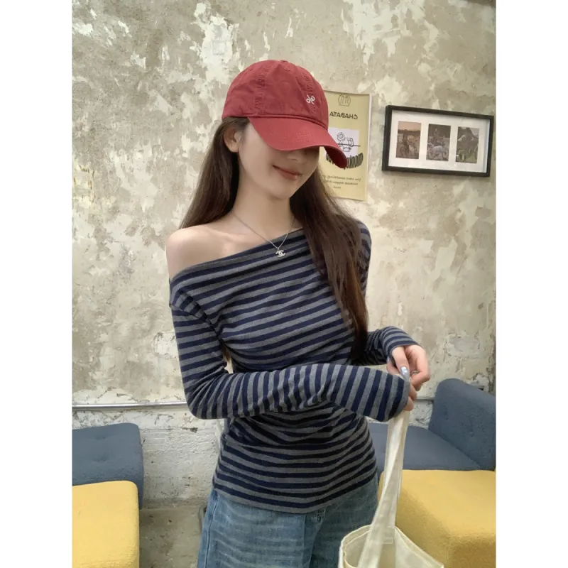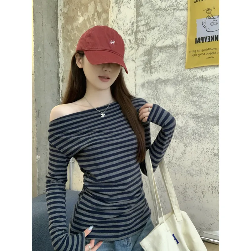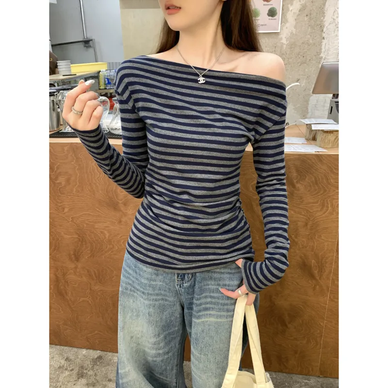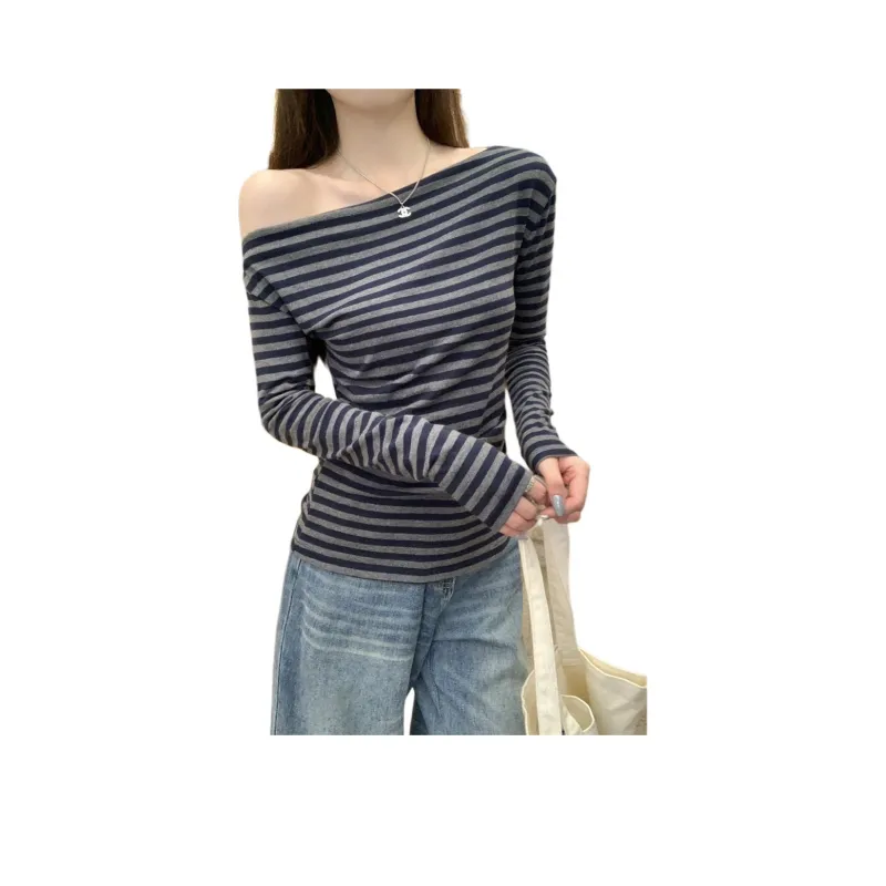 CASTLE WOODS Серый Синий Полосы Женская T-Рубашка