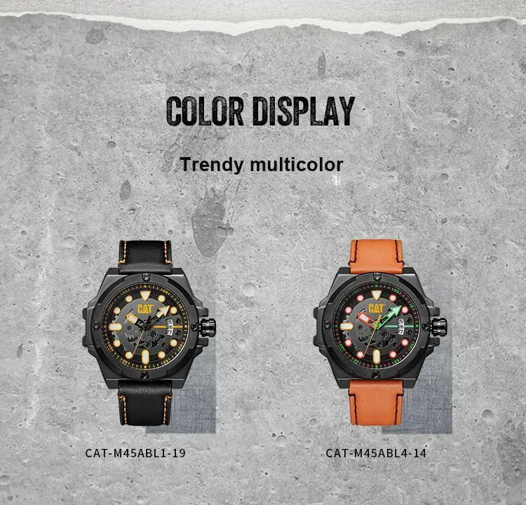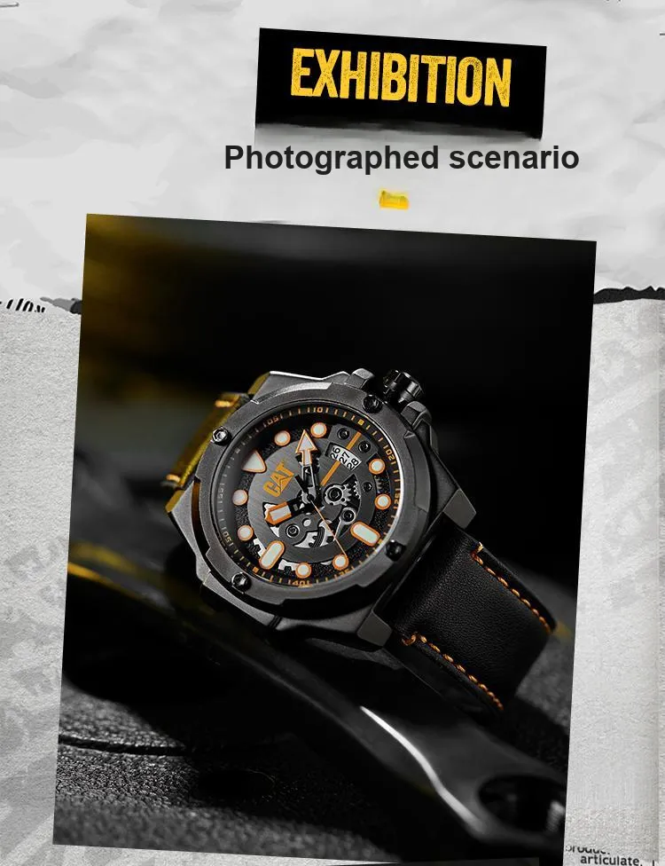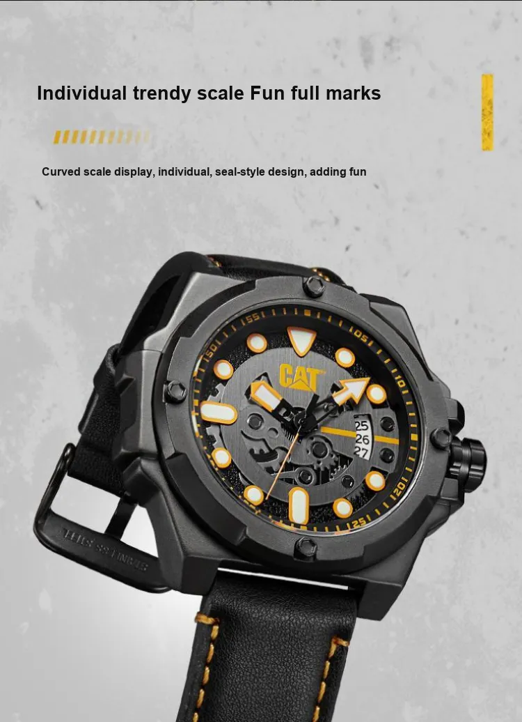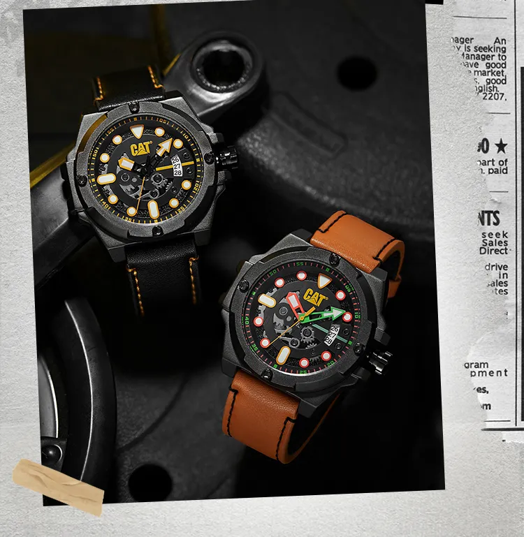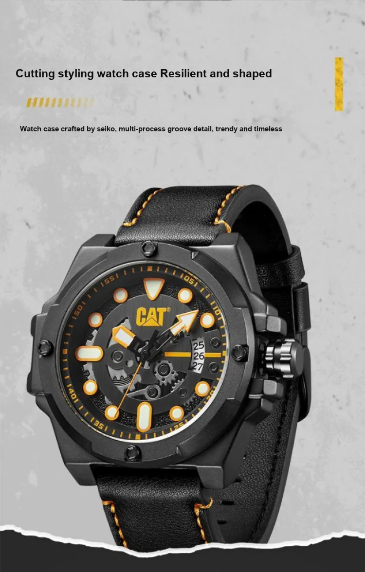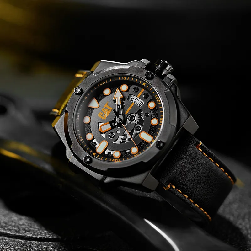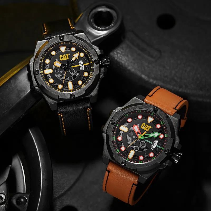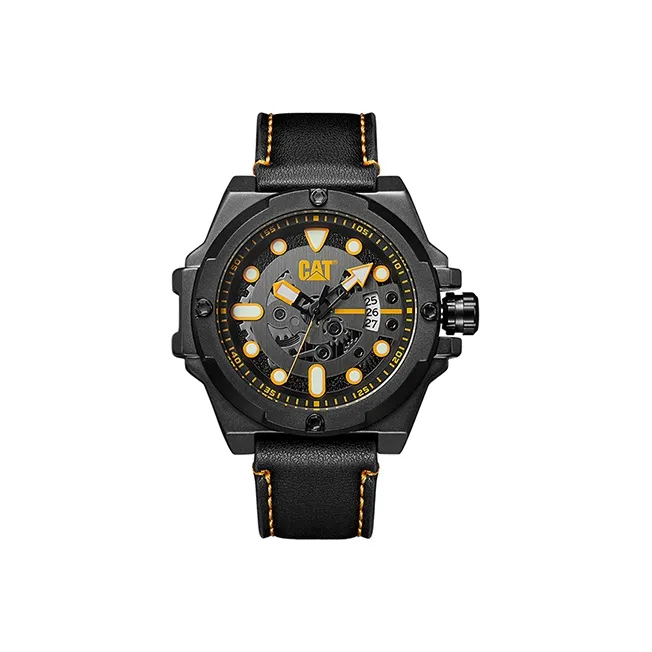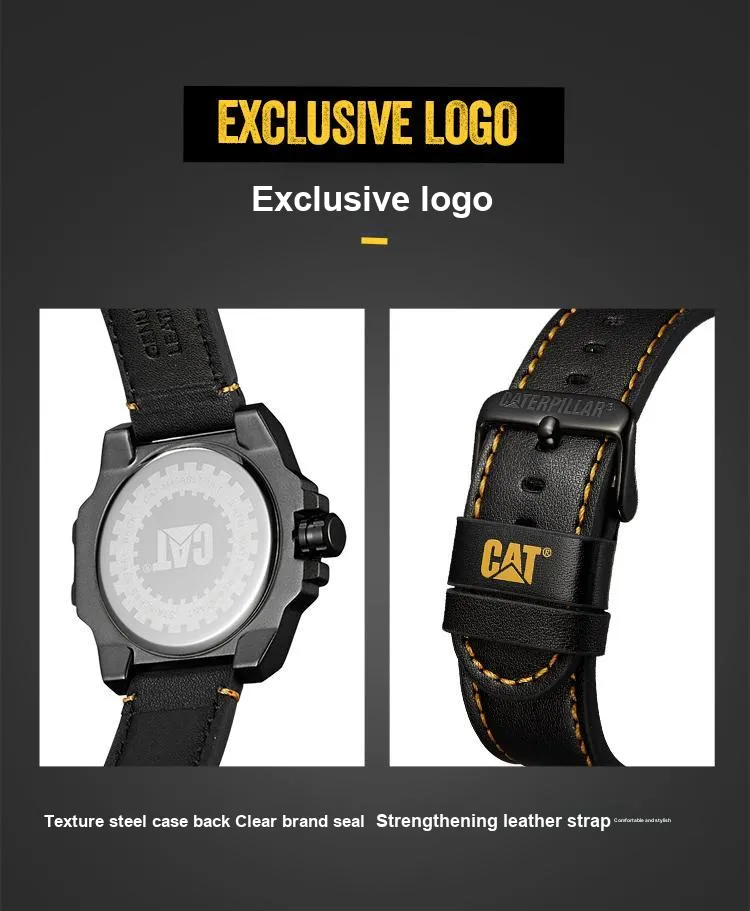 Коллекция CAT Наручные часы Кварцевый механизм Кожаный ремешок Черный циферблат Мужские часы
