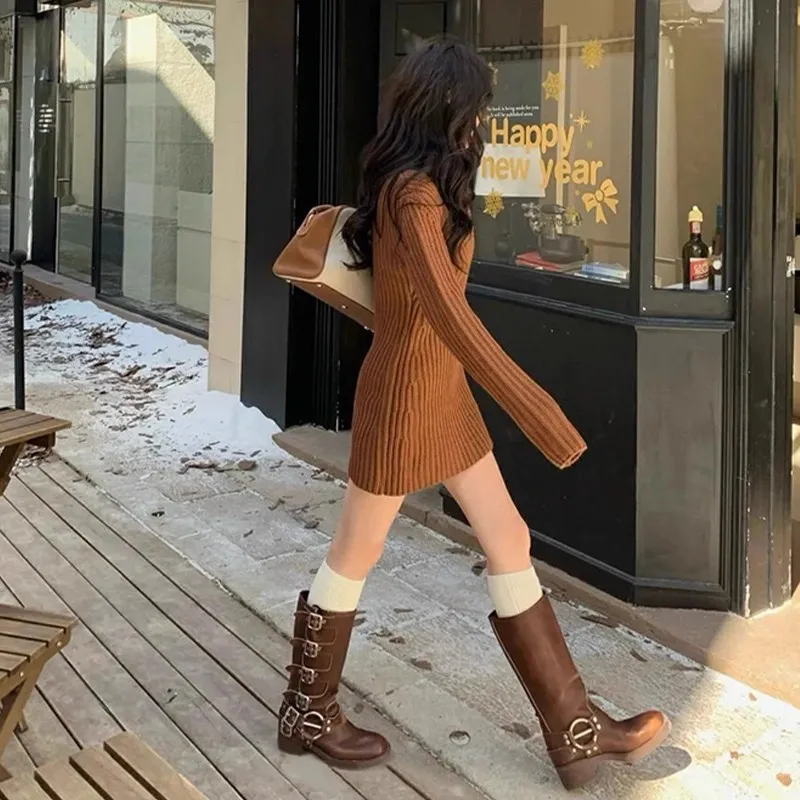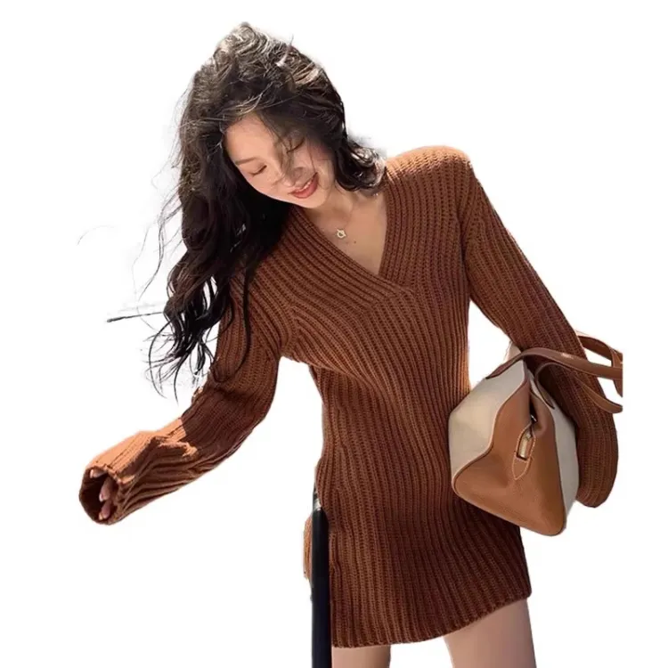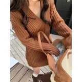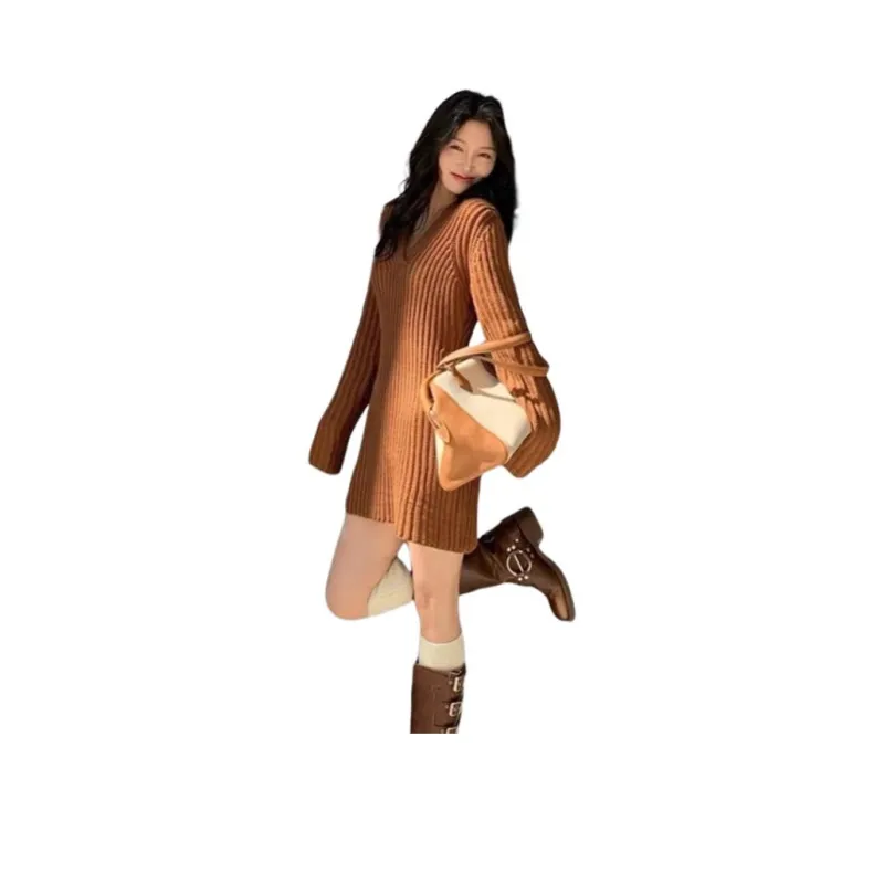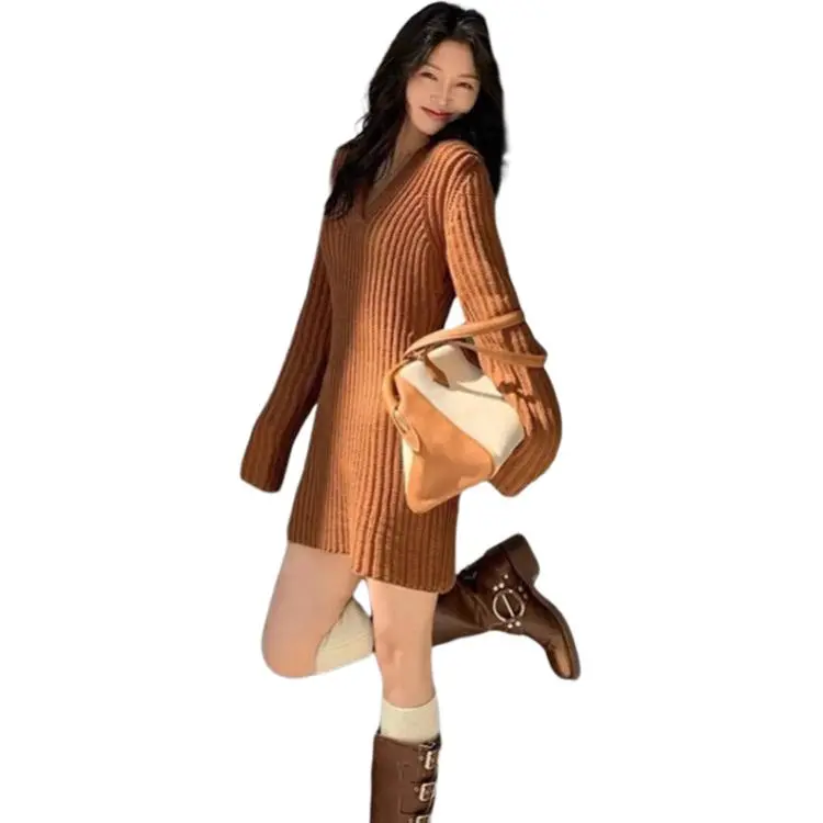 CDAYU Кофе Женские Длинные Платья с Рукавами