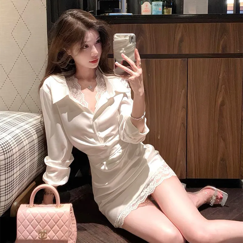 CDAYU Белый Женский Длинный Рукав Платья