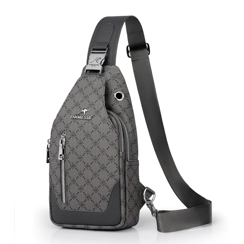 Ceion Keust PVC Sling Bag Large Men's Gray Black Ceion Keust PVC Сумка через плечо Большая Мужская Серый Черный