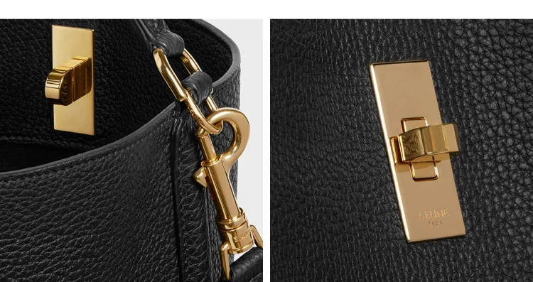 CELINE 16 Телячья кожа Ведрообразная сумка Сумка через плечо Сумка через плечо Женская Черная