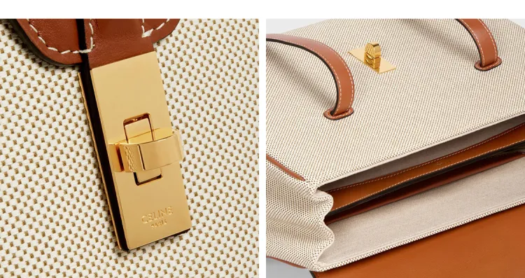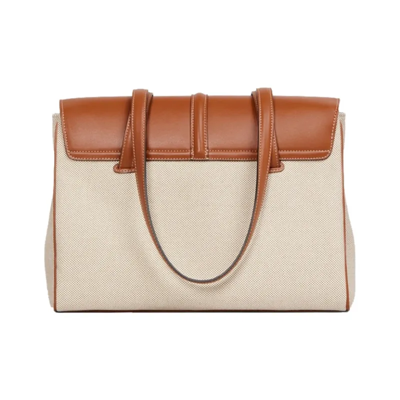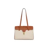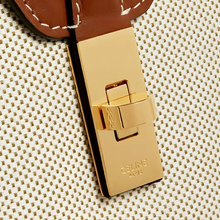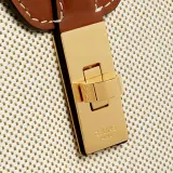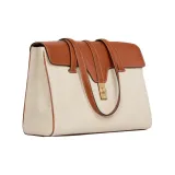 CELINE 16 Ткань и Коровья Кожа Сумка Сумка через плечо Средняя Женская Рыжевато-коричневый Белый