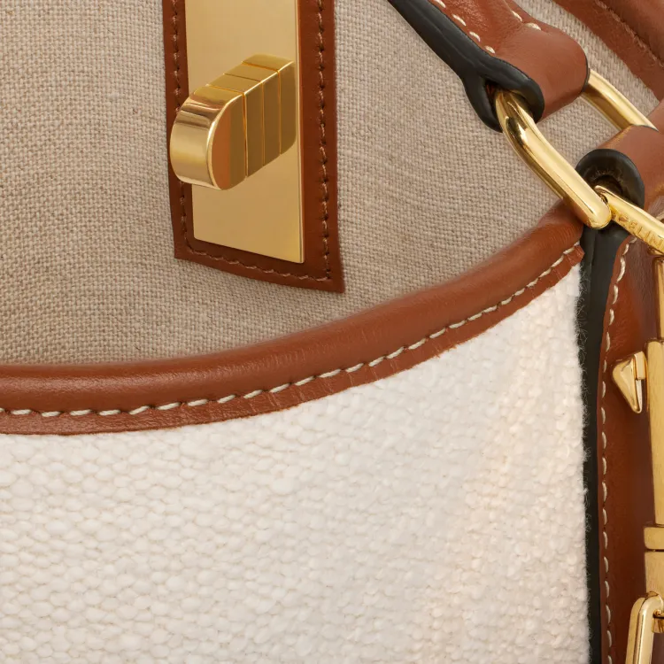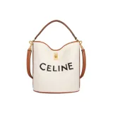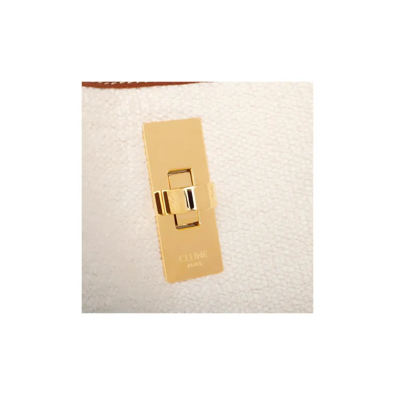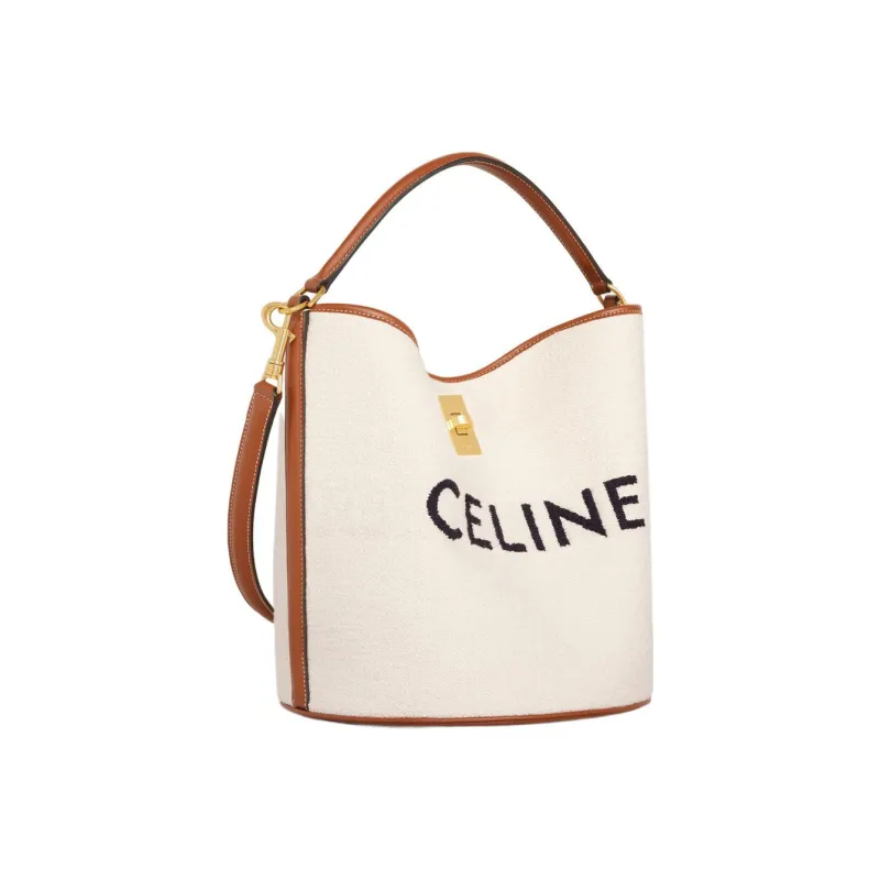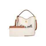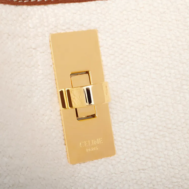 CELINE 16 Жаккардовая ткань с коровьей кожей Сумка через плечо Сумка Обычная Женская Естественный Коричневый