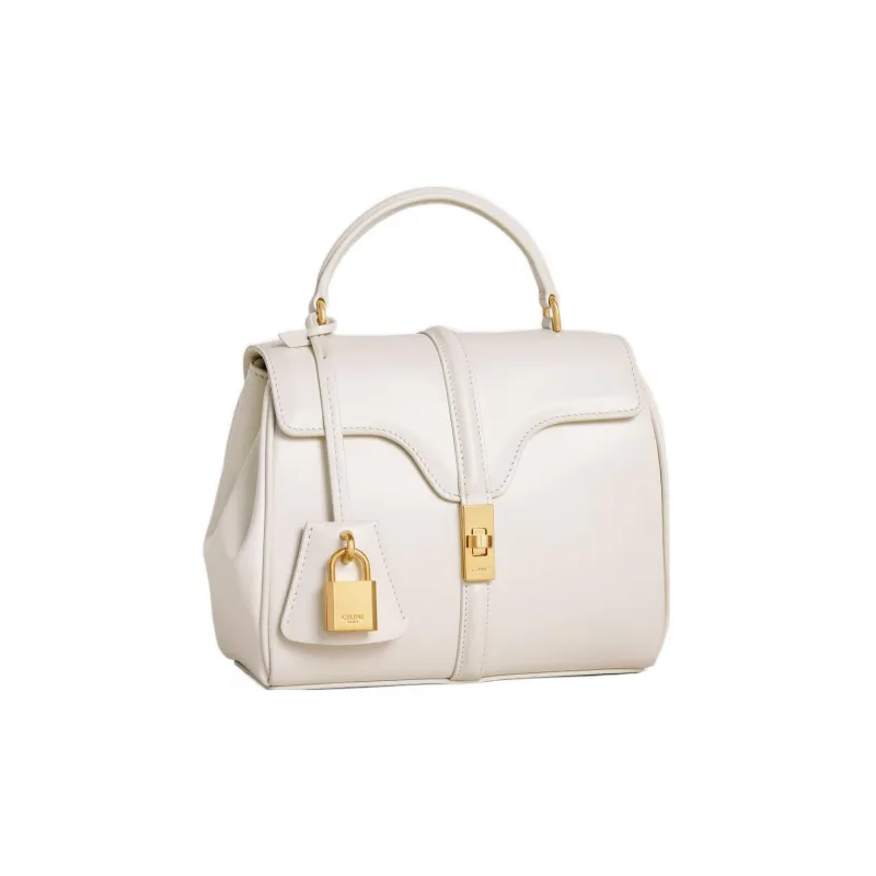 CELINE 16 Satin Телячья кожа Сумка через плечо Сумка Мини Women's White