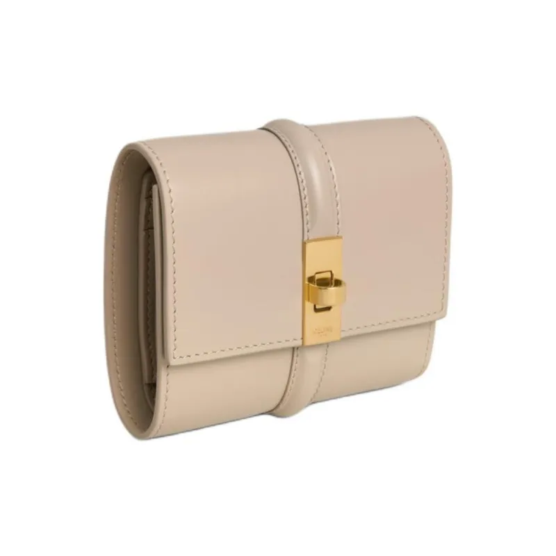 CELINE 16 Блестящий Телячья кожа Кошелек Маленький Женские Капучино