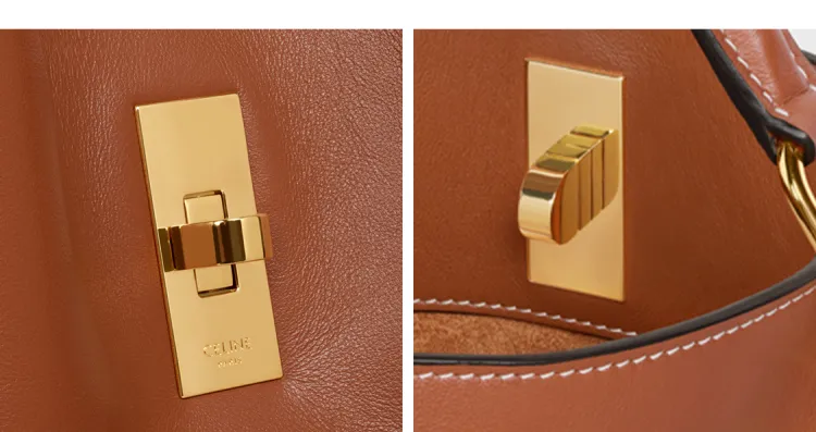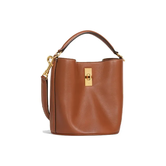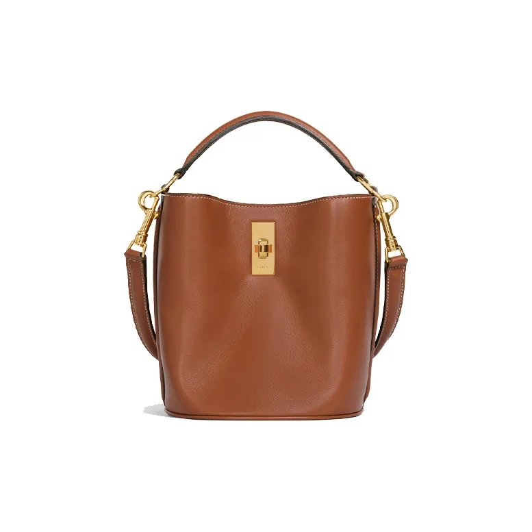 CELINE 16 Гладкая Телячья Кожа Ведрообразная Сумка Сумка через плечо Сумка Маленькая Женская Рыжевато-Коричневая