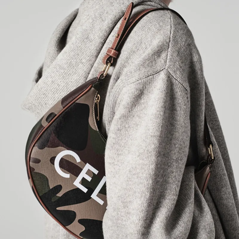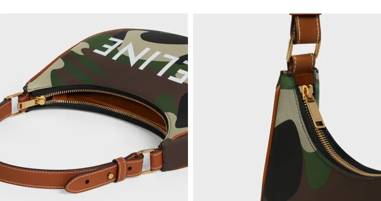 CELINE AVA Холст и кожа Сумка через плечо Сумка на одно плечо Женская Камуфляж с принтом Хаки