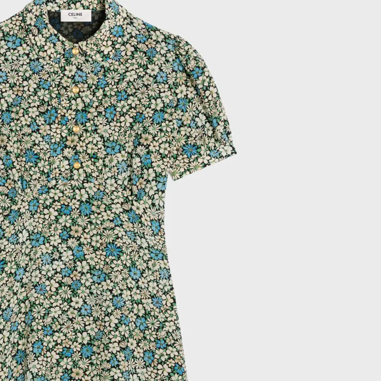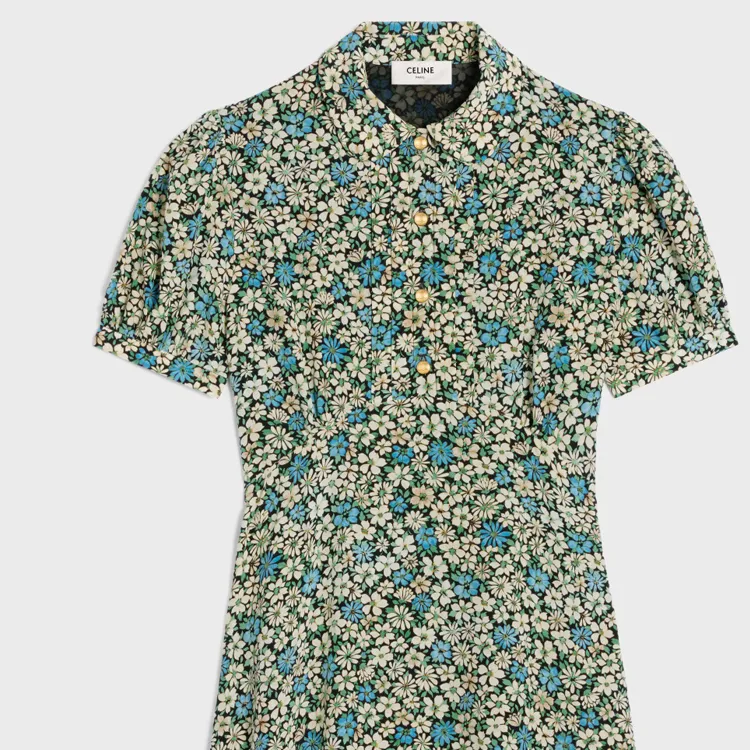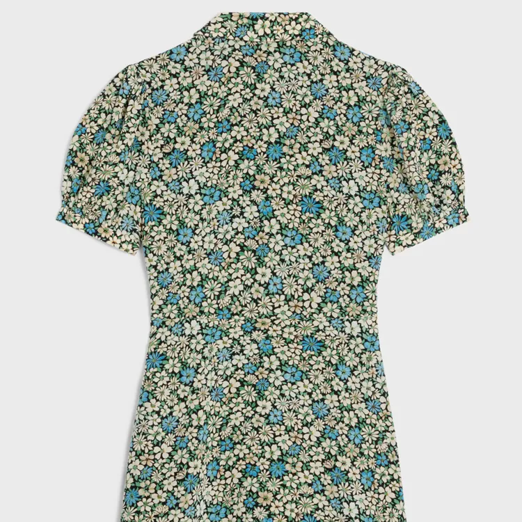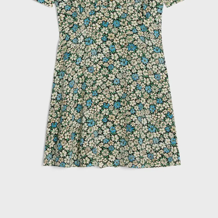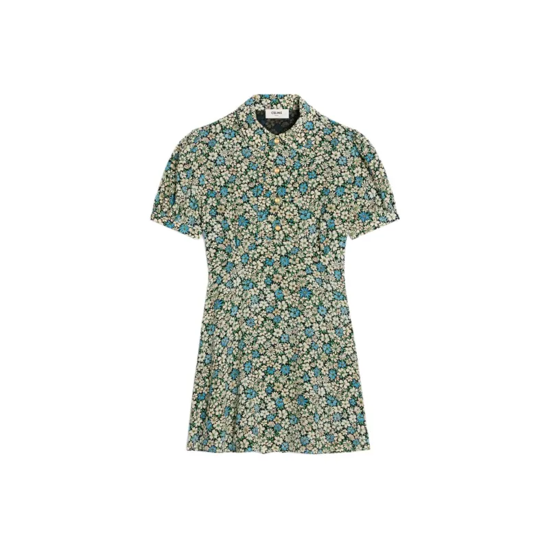CELINE SS24 Короткое платье с короткими рукавами женское синее