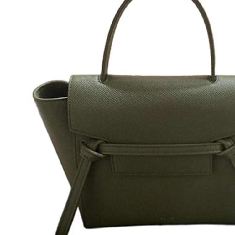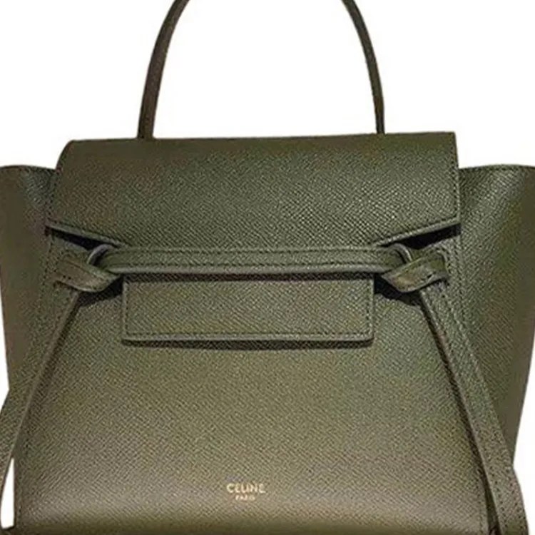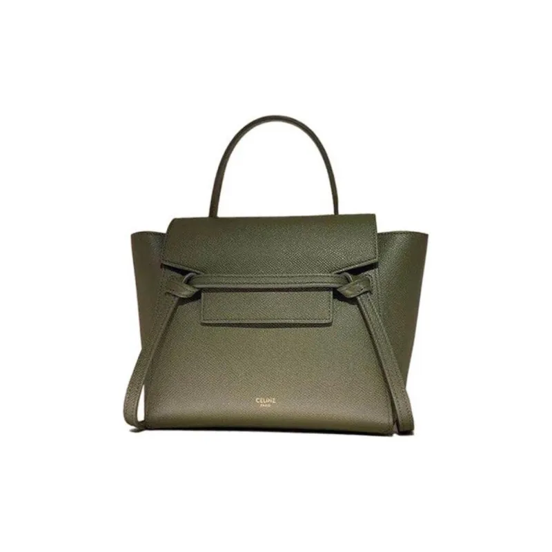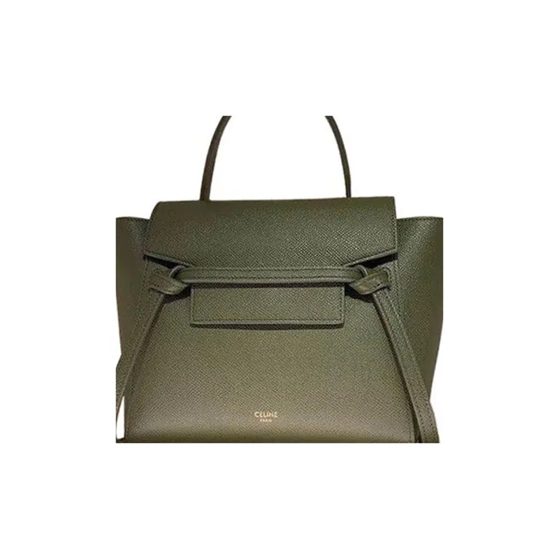 CELINE Ремень Grained Телячья кожа Сумка через плечо Женская Оливково-зеленая