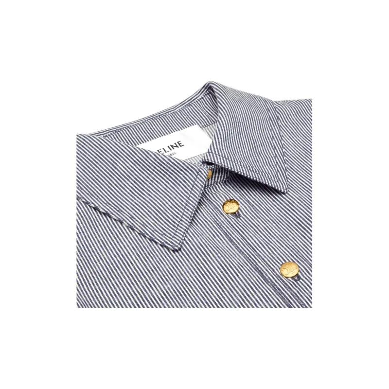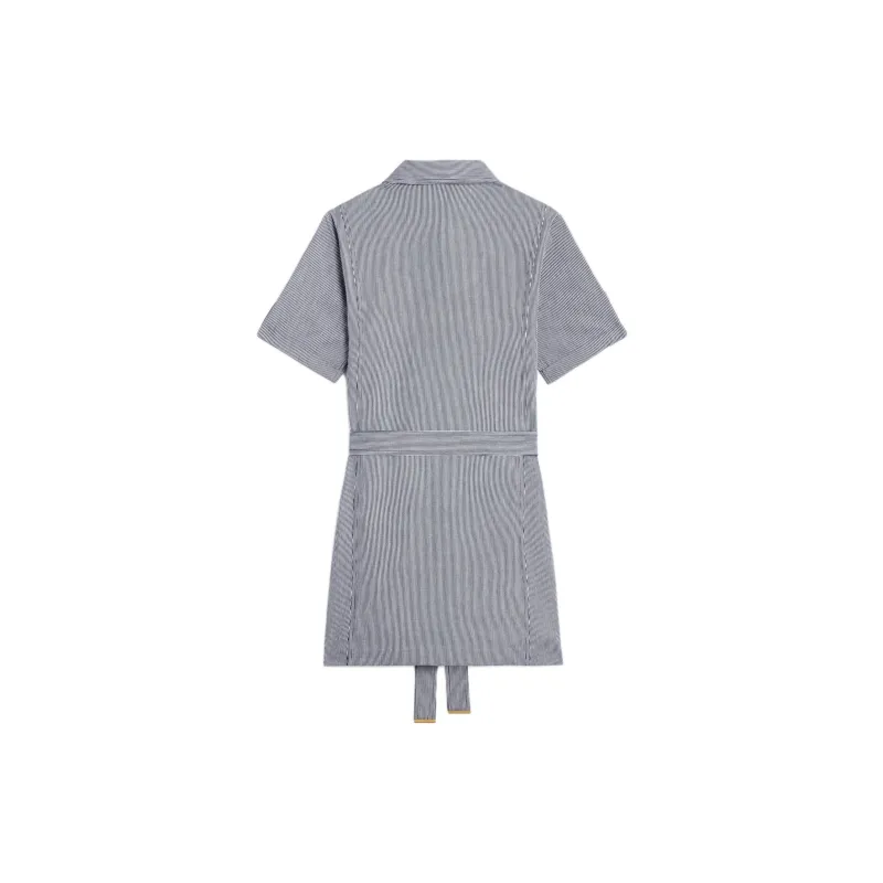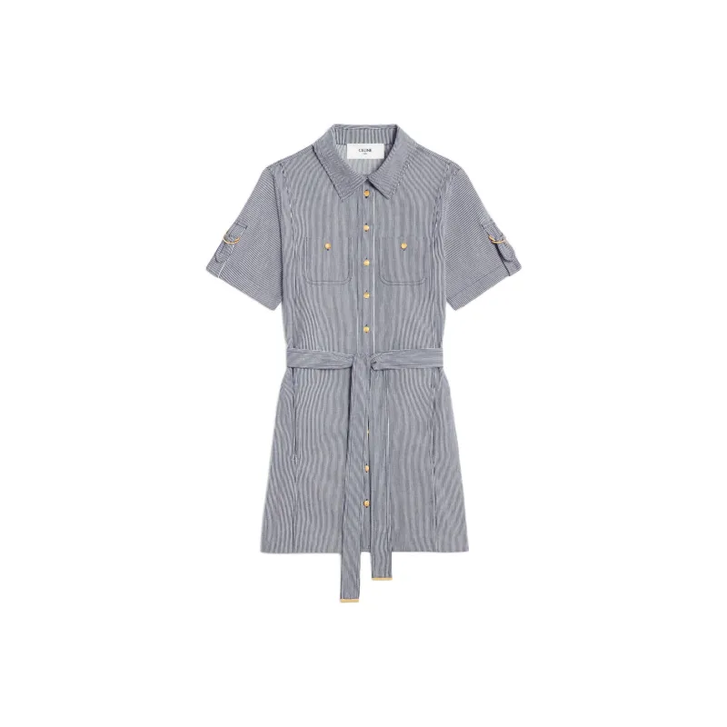 CELINE TRAPEZE Мини Платье в Полосатый Хлопок с Короткими Рукавами Женское Морской Синий