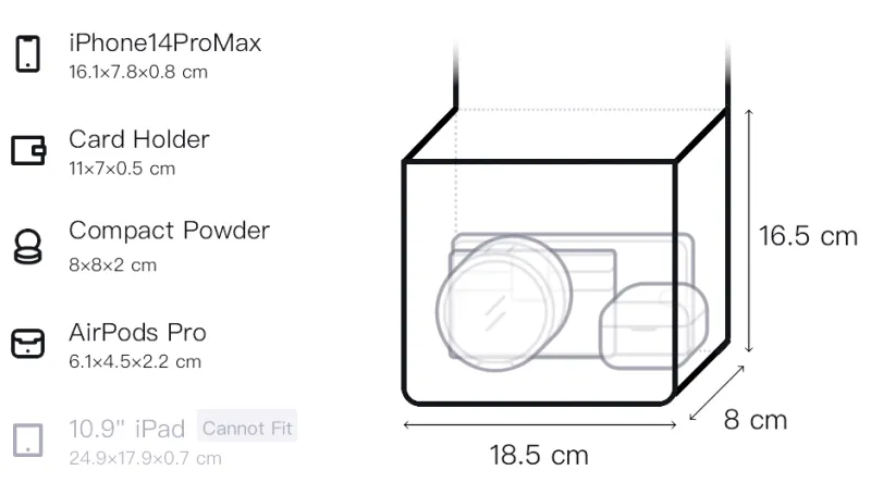 Д18,5*Ш8*В16,5 см