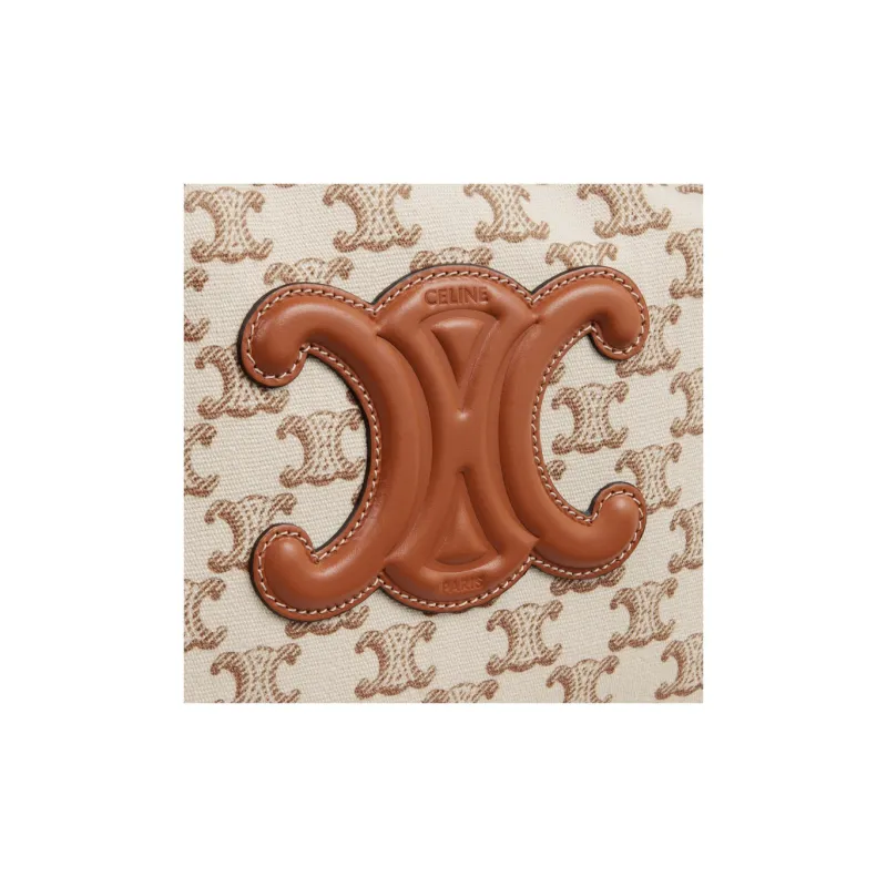 CELINE Cabas Сумка через плечо из ткани с обметом из коровьей кожи маленькая сумка женская коричневый и белый