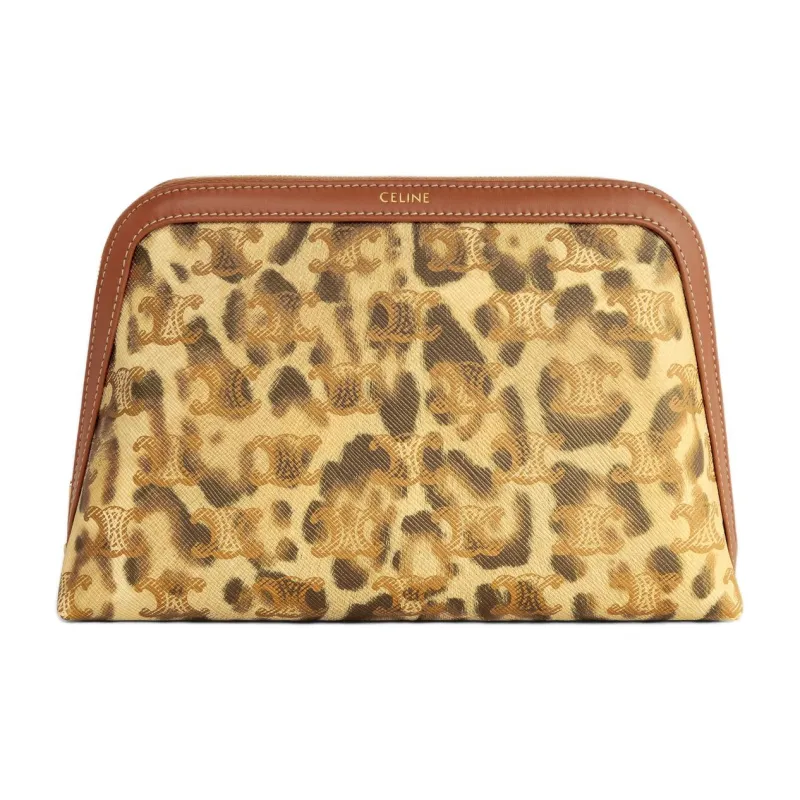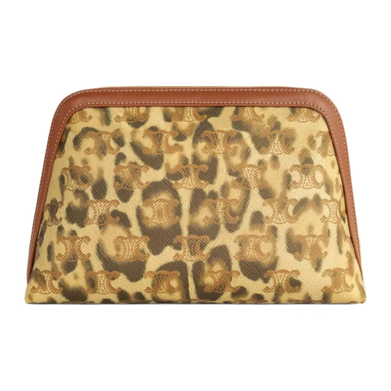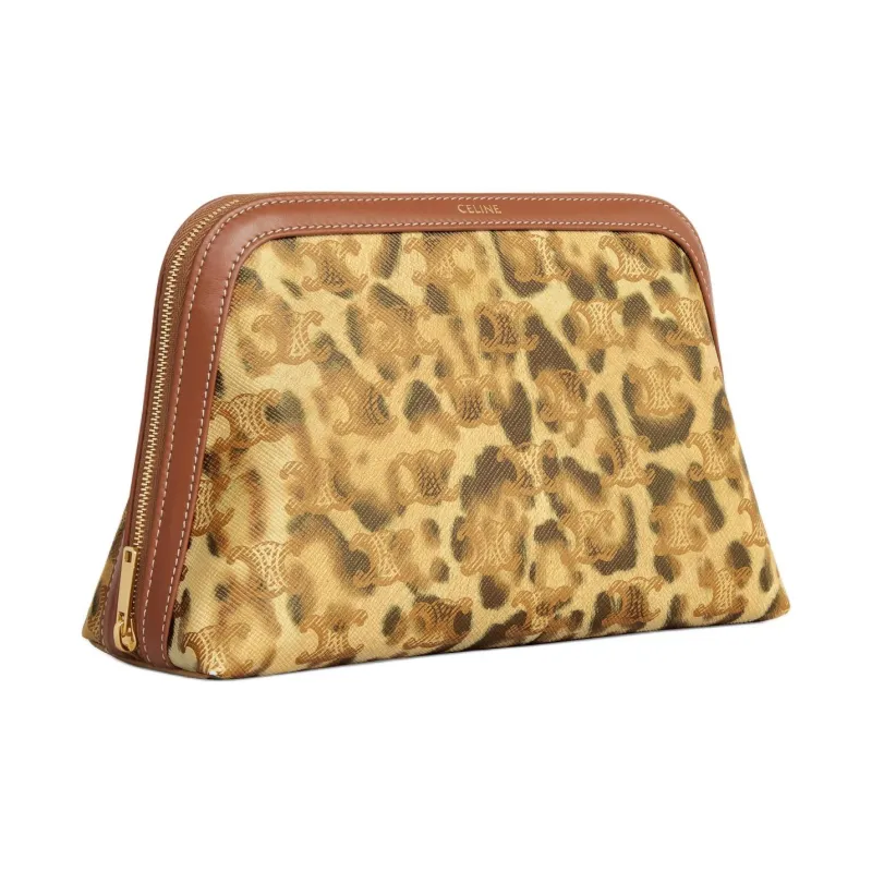 CELINE Холст Телячья кожа Клатч Косметичка Средний Мужской Леопардовый принт